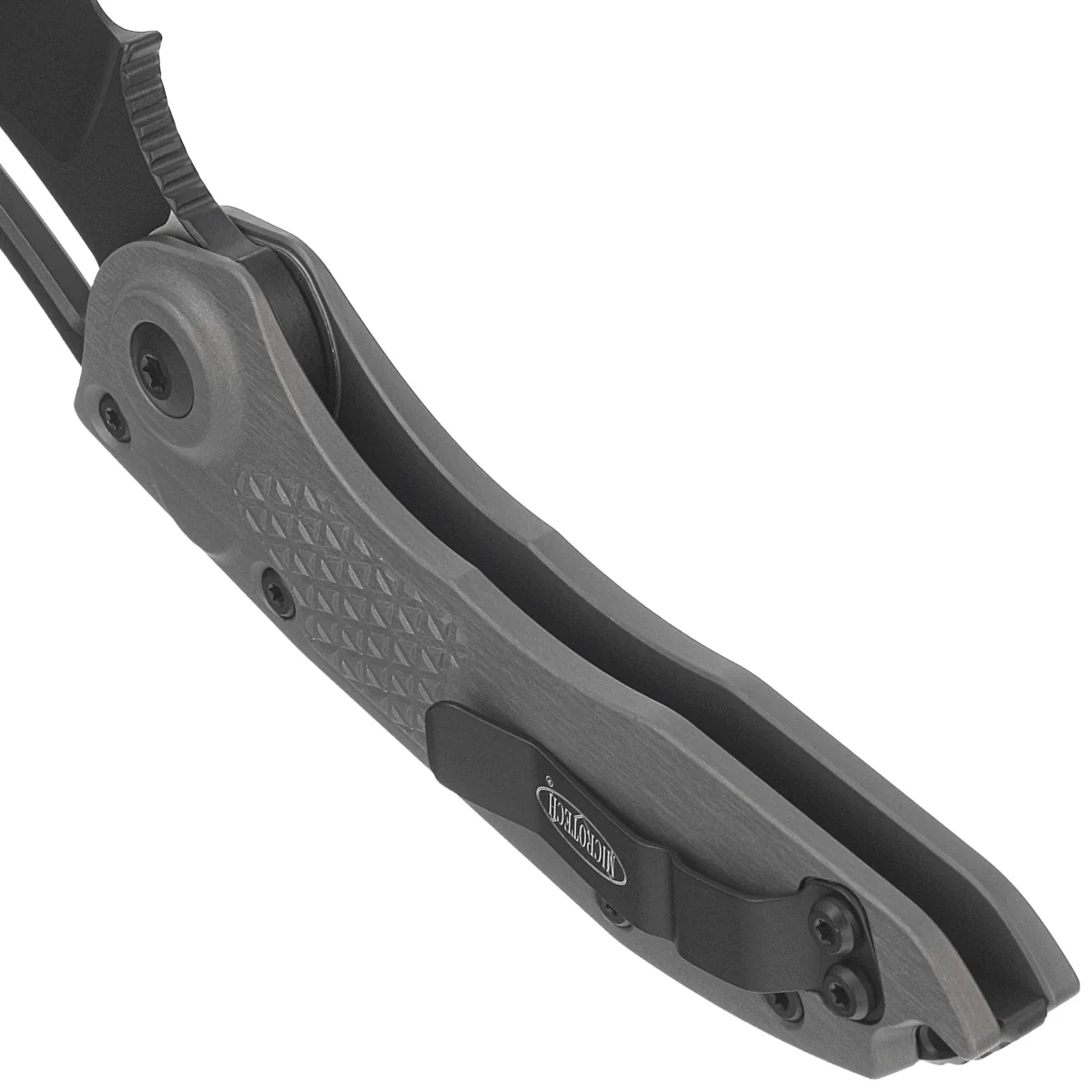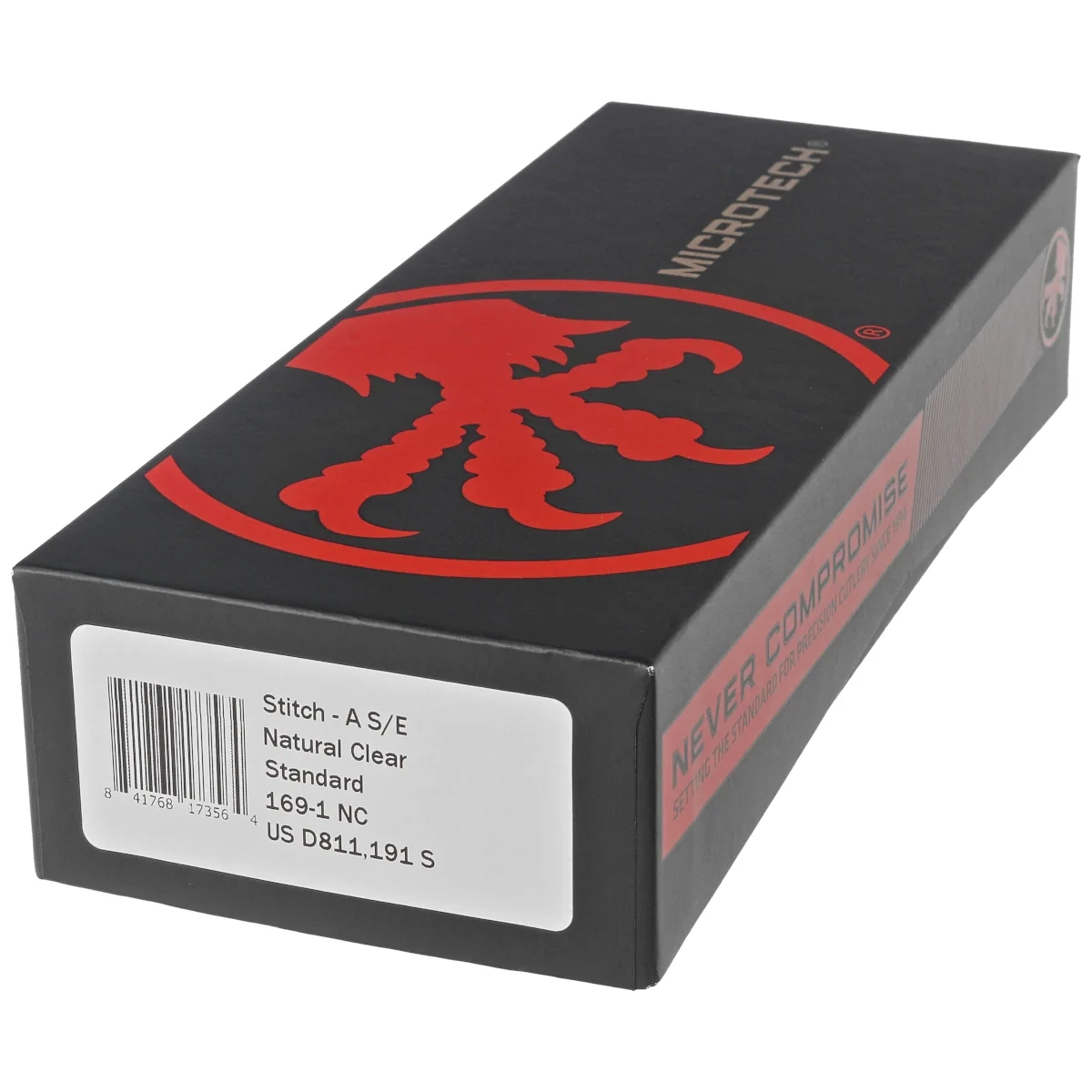 - Stitch-A S/E Natural Clear Aluminum, Black automatic version of the popular design by Sebastijan Berenjie of Borka Blades and Microtech. Wide harpoon-shaped blade, excellent materials and legendary quality workmanship from Microtech Knives.