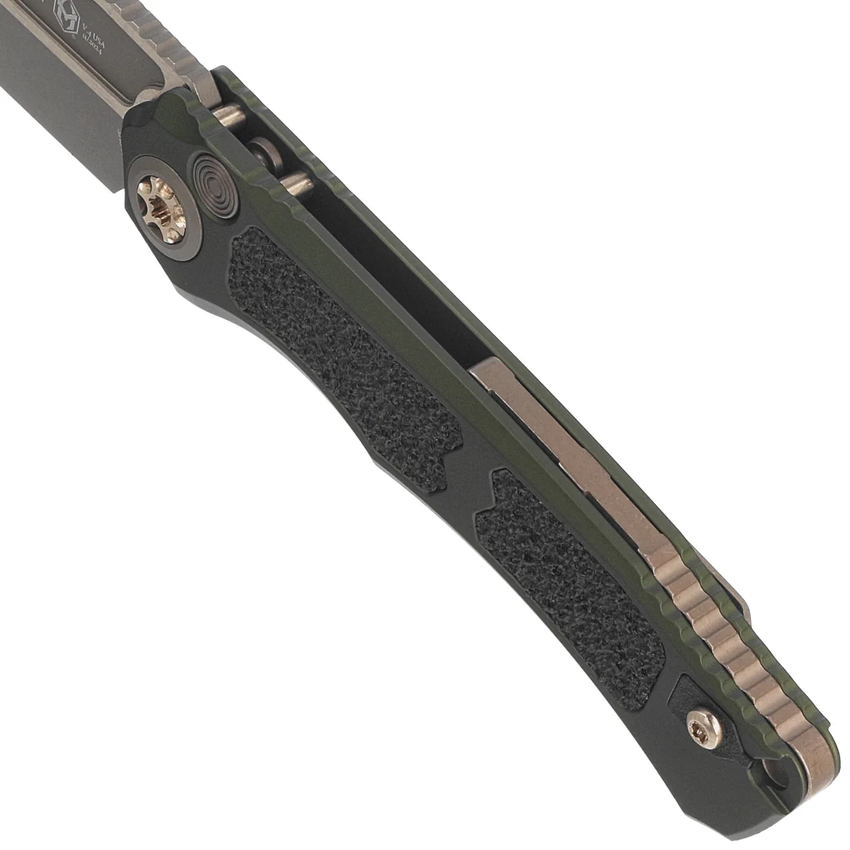 Heretic Wraith Auto V4 Bowie Green Aluminum/3M, Bronze Stonewashed MagnaCut by Tony Marfione Jr. Switchblade (H002-7A-GRN)