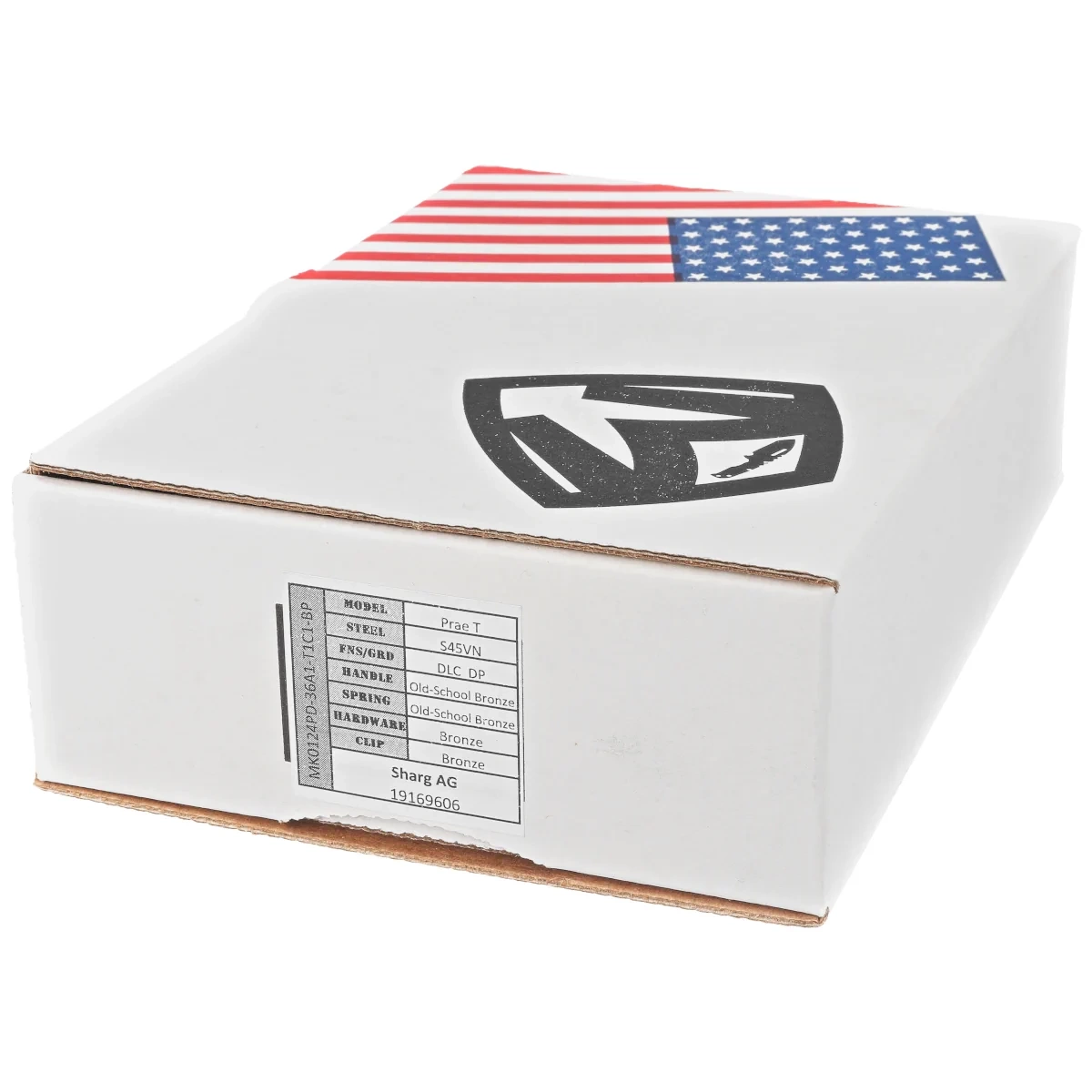 Name: Praetorian T Drop Point, “Old-Shool Bronze” Titanium, Bronze HW/Clip, Black DLC Breaker, Black DLC