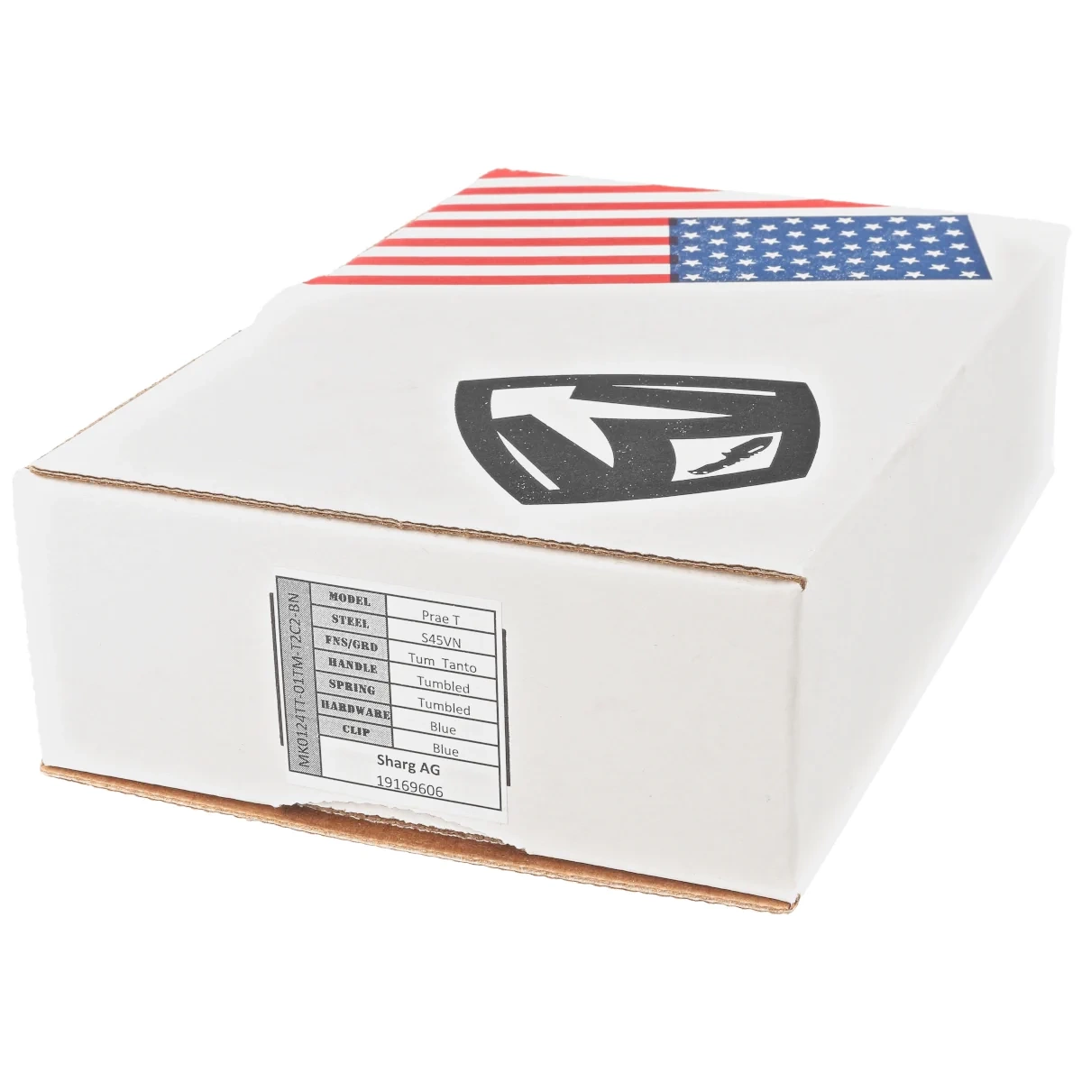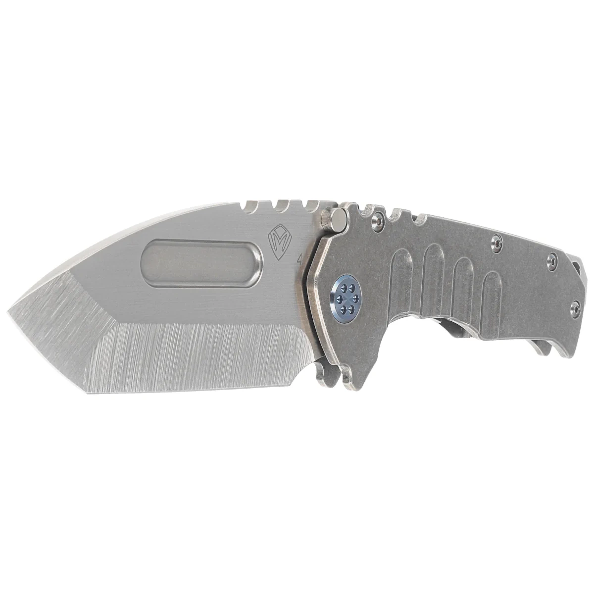 The elite Imperial Praetorian Guard was a unit into which the best of the Roman legionaries were selected to serve as the Emperor's personal protection. The Praetorian T Tanto Gray Titanium, Blue HW/Clip, NP3 Breaker, Tumbled from MKT is just such an elite knife. Its amazing design is limited only by the strength of its materials. With a 4.8mm thick blade, solid 3.2mm thick titanium grips and 6.35mm thick pivots and screws, it stands out from other knives. The hollow grind on the blade has been crafted by hand - a rarity in the knife industry, achieved by only a select few manufacturers capable of executing such precision.