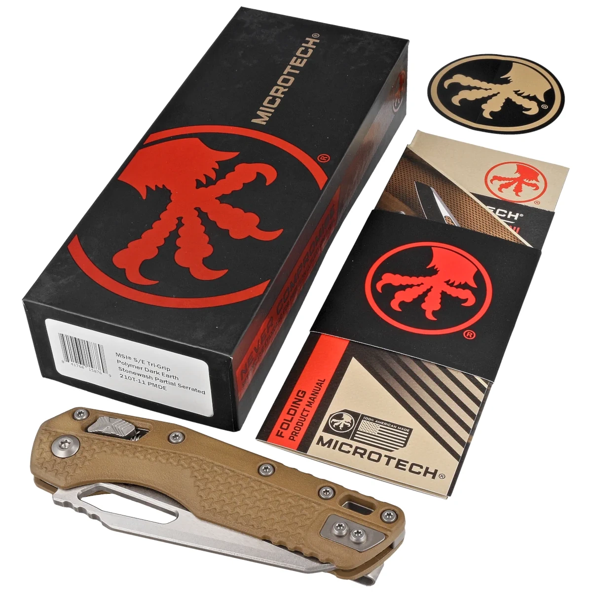 • MSI S/E Dark Earth Tri-Grip Polymer, Stonewashed P/S folding knife with intuitive RAM-Lock. Superior M390MK blade steel, the result of collaboration between Microtech and Bohler engineers. Ergonomic polymer handle. Designed by Anthony Marfione!