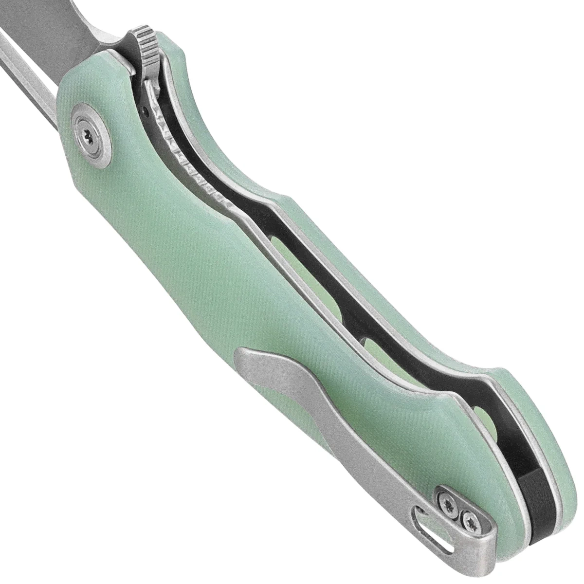 Dugu Jade G10, Beadblasted is an exceptional example of functionality and solid workmanship in the EDC knife category. Blade made of Sandvik 14C28N steel is distinguished by excellent corrosion resistance and long-lasting sharpness retention, making it ideal for both everyday use and more demanding tasks. Handle made of durable G10 composite was designed with user comfort in mind. The ergonomic shape provides a secure grip even in difficult conditions. The liner lock mechanism guarantees reliable blade protection during use, and the flipper allows the knife to open quickly and smoothly. The compact size and thoughtful design make this model an ideal choice for those who value practicality and reliability. Kubey Dugu is an investment in quality that will meet the expectations of the most demanding users.