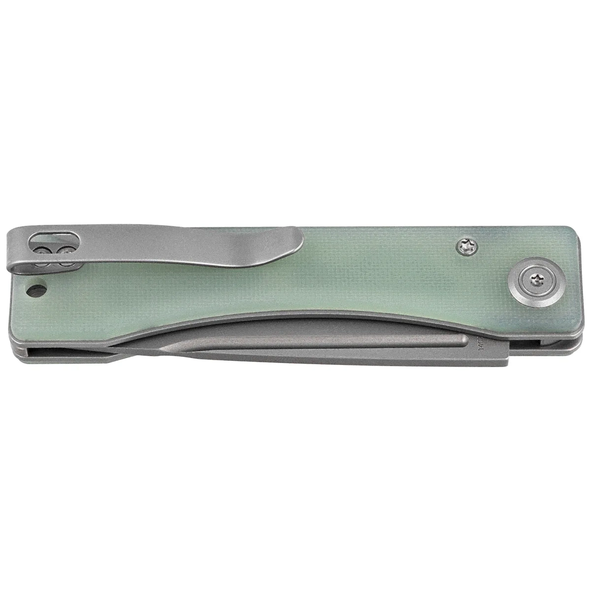 - Akino Jade G10, Beadblasted compact EDC folder, design by well-known designer Tiguass. Utility Blade made of Sandvik 14C28N steel. Simple, comfortable G10 composite handle. One of the best tested lockbacks in the world, the lockback.