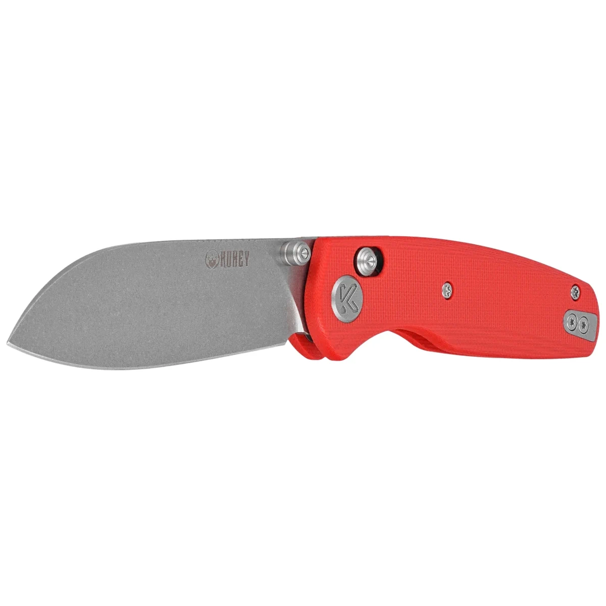 Handle - is two pieces of composite G10, a material extremely mechanically durable and practically completely resistant to weather conditions and chemicals, textured for improved grip security, screwed to the steel frame of the knife. The chamfered edges of the covers eliminate sharp edges for comfort and improve grip confidence. Serio holes in the Handle add visual lightness and relieve stress on the knife. The lightweight backspacer provides the desired rigidity and strength of the design The simple, secure design gives confidence for years of use. A deep finger undercut (fore finger groove) improves grip confidence. The pivot axis is adorned with a stylized Kubey Knife brand logo. A two-position (right/left) deep carry clip allows you to carry the knife discreetly in your pocket in the tip-up (blade tip up) position.
