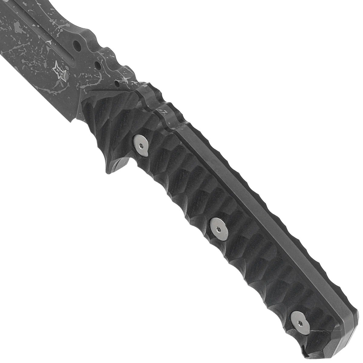 Handle - profiled grips made of G10, a virtually indestructible material resistant to weather conditions, chemicals and mechanical damage. The beveled edges of the covers eliminate sharp edges and the surface texture improves grip. The handle covers are attached to the shaft with Torx screws. The low-slung lower guard and Fore Finger Groove, a deep cut under the finger, prevent the hand from accidentally slipping onto the blade.