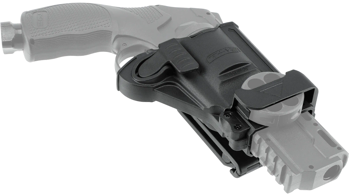 - Umarex T4E Holster for HDR 50 – Durable, Lightweight, and Secure. Features an automatic locking system, adjustable belt mount, and a compartment for a spare magazine. Quick access and comfortable carry in any situation!
