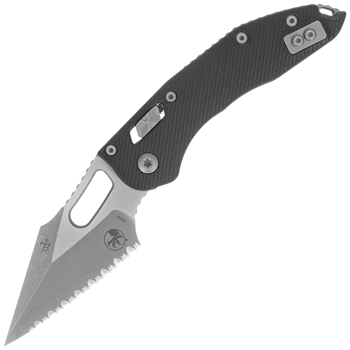• Stitch Ram-Lok S/E Black Fluted G10, Apocalyptic F/S. The manual version of the popular design by Sebastiaan Berenji from Bork Blades and Microtech. A wide, harpoon-shaped blade, excellent materials and the legendary workmanship of Microtech Knives.