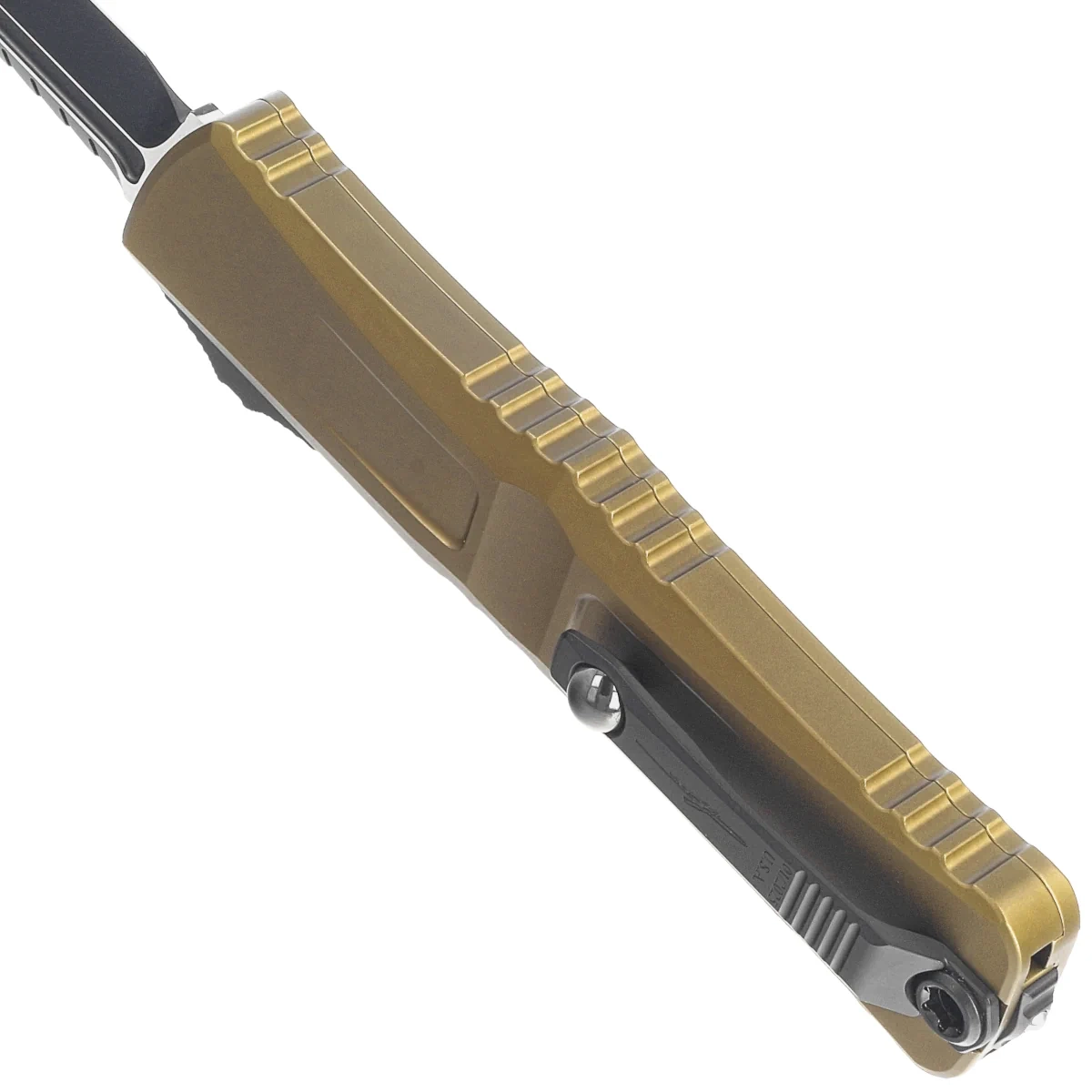 Combat Troodon Gen III Interceptor Signature OD Green Aluminum, Black the largest of the automatic knives, is the pinnacle of precision engineering and tactical efficiency in the field of OTF (Out The Front) knives. Built for a wide range of utility applications, it boasts a 25% larger size compared to the flagship Troodon. Precision-crafted, equipped with a sophisticated and extremely fast retractable mechanism, and a new type of razor-sharp blade - Interceptor. 100% manufactured and assembled in the USA. Designed by Anthony Marfione, knifemaker and owner of Microtech Knives.