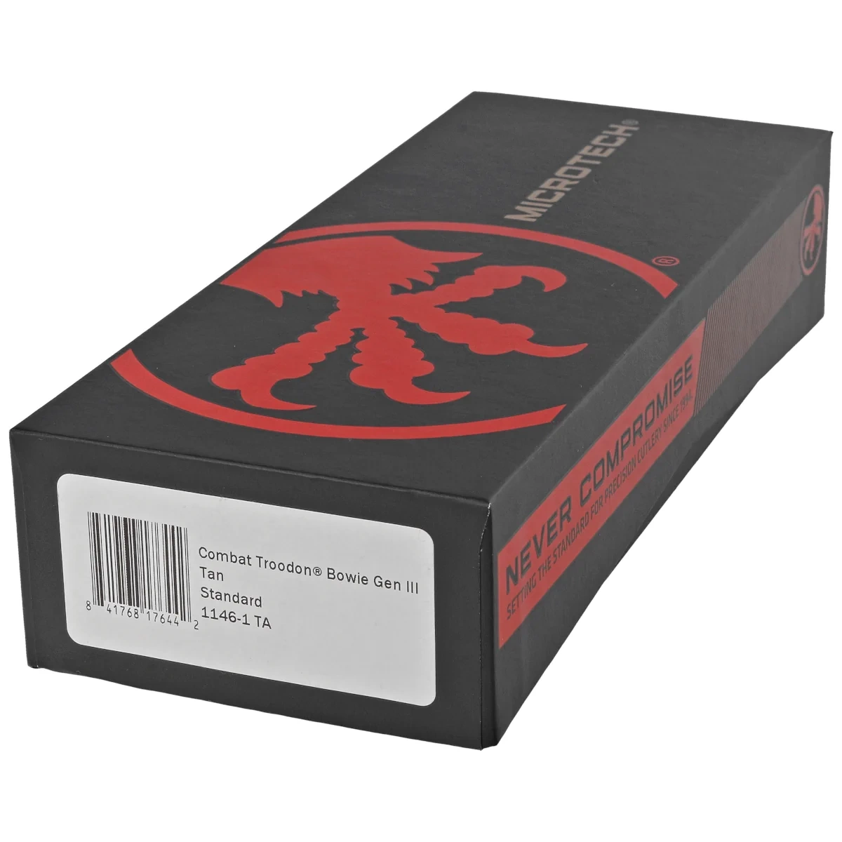 Microtech Combat Troodon Gen III Bowie Tan Aluminum, Black M390MK by Tony Marfione (1146-1TA)