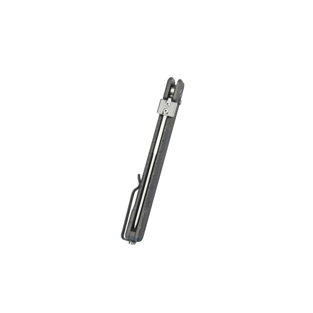 Handle - grips made of titanium 6AL4V with a flame-coloring in a tiger stripes pattern, a material with high mechanical resistance and almost complete resistance to weather conditions and chemicals. The whole is screwed to a solid backspacer, also made of titanium 6AL4V. The simple, solid design guarantees many years of use. The forefinger groove improves grip and creates a mini guard to prevent the hand from slipping onto the blade. The two-position (right/left) titanium deep carry clip allows the knife to be carried discreetly in the pocket in a tip-up position (with the tip of the blade up).