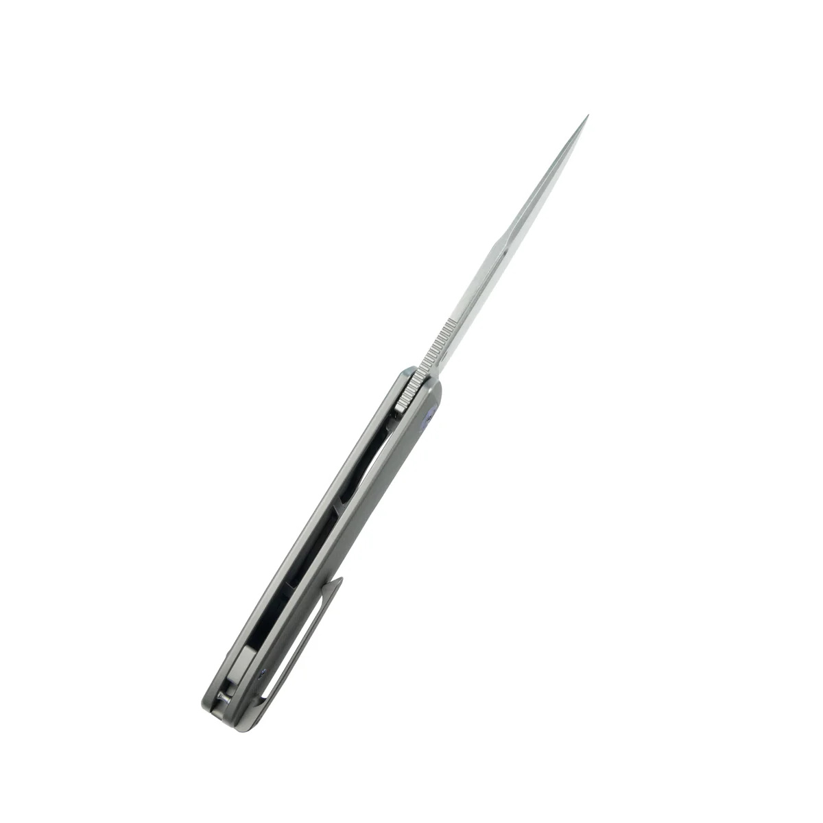 Supercell Gray Titanium, Stonewashed is a robust EDC folder designed by K.C. Spiron. The blade is made of vacuum-hardened and ice-hardened Sandvik 14C28N steel. This ensures high durability and long-lasting sharpness. Handle made of durable, lightweight titanium with a micro-milled texture. It provides a comfortable and stable grip in all conditions. The design offers two independent ways of unfolding: a classic hole and a flipper-type fin. Safe use is guaranteed thanks to the proven liner lock. The knife is suitable for everyday tasks, from precise cutting to more demanding field work. The shape of the tool combines minimalist aesthetics with efficiency. Supercell is a reliable, functional accessory for any demanding user.