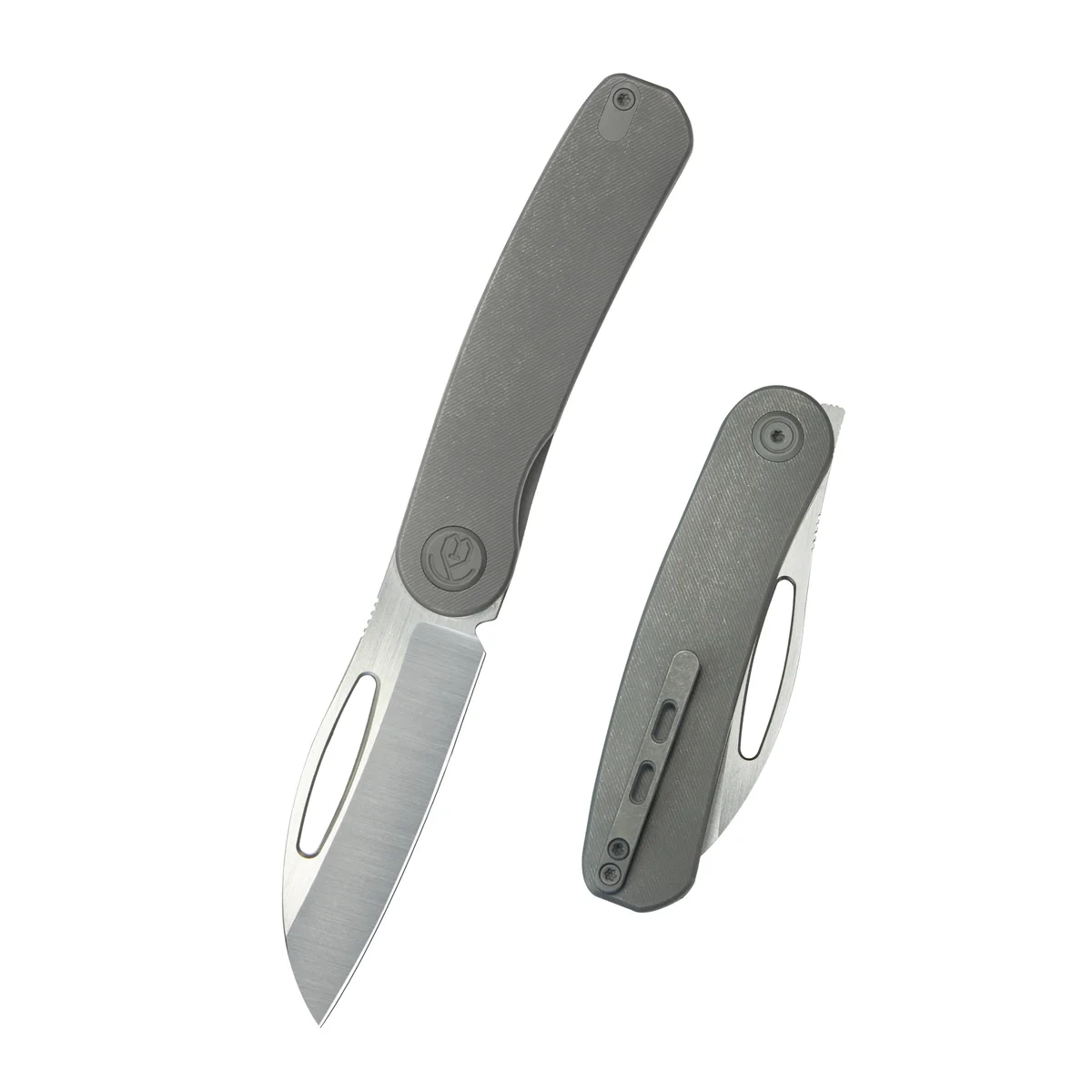 Handle - profiled grips made of sandblasted titanium 6AL4V, micro-milled with a fine texture. The whole is screwed to a solid backspacer, also made of titanium. The simple, solid construction ensures many years of use. The pivot axis is decorated with a titanium cap (Pivot Cap) in a contrasting color. The two-position (right/left) titanium deep carry clip allows you to carry the knife discreetly in your pocket in a tip-up position (with the tip of the blade up). The forefinger groove improves grip and creates a mini guard to prevent the hand from slipping onto the blade.