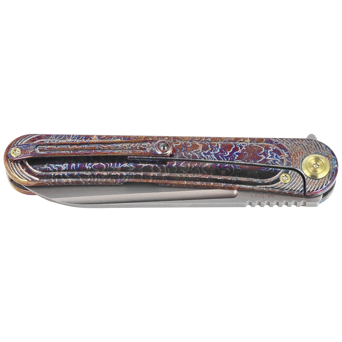 - Dandy Flamed Titanium, Sandblasted: Maxim Tkachuk's exquisite gentleman's folder. Long blade made of CPM S90V steel, comfortable titanium handle. Safe-like frame lock, quick flipper opening. The perfect accessory!