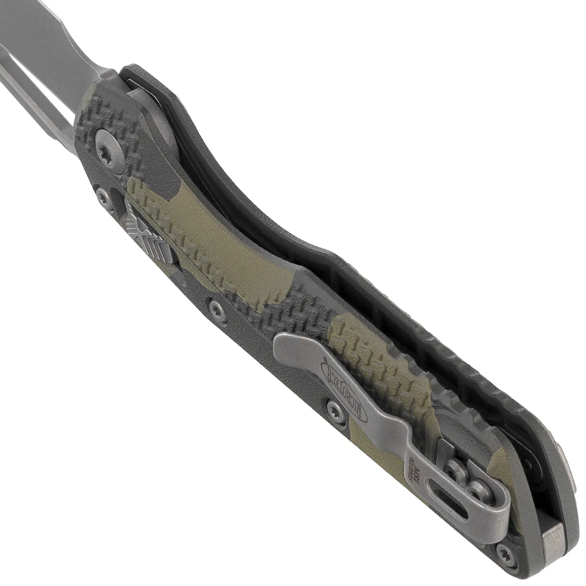 MSI S/E Ram-Lok Olive Camo Tri-Grip Polymer, Apocalyptic folding knife, combining strength, durability and elegance. Its blade is made of excellent M390MK steel, which is the result of a collaboration between two renowned companies - Microtech and Böhler. This steel is known for its exceptional durability and long-lasting sharpness, making this knife up to any challenge. The intuitive RAM-Lok ensures safety during use. This innovative lock is easy to use and ensures ease of use for both right- and left-handed people. The polymer handle is durable and ergonomic. Its shape has been designed to fit perfectly in the hand, ensuring comfort even during prolonged use. This knife is not only a tool, but also a work of applied art. Its designer, Anthony Marfione, founder and owner of Microtech, has taken care of every detail. From the elegant black finish to the satin details, this knife is both beautiful and practical. Whether you are looking for a reliable tool or an elegant accessory, MSI (Microtech Standard Issue) knife will meet your expectations.