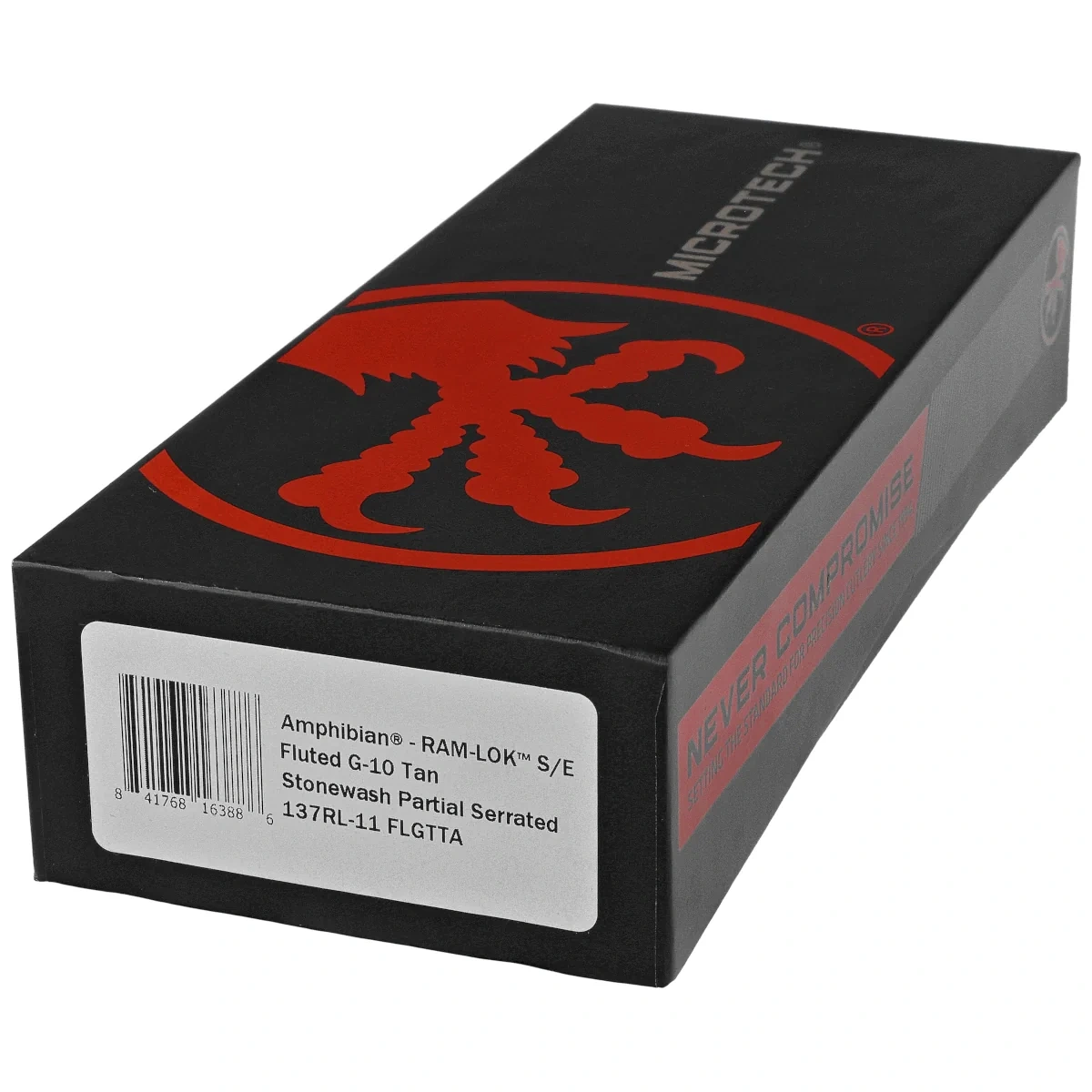 - Amphibian Ram-Lok S/E Fluted Tan G10, Stonewashed P/S Re-edition of the folding knife with intuitive RAM-Lock. Excellent M390MK blade steel, a collaboration between Microtech and Bohler engineers. Ergonomic handle. Designed by Anthony Marfione
