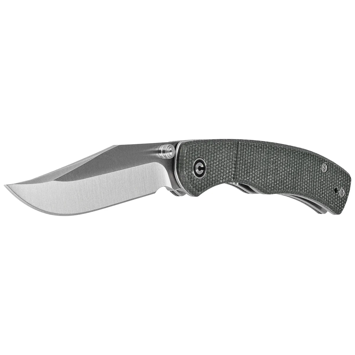 Handle - rough grips made of Canvas Micarta composite, a virtually indestructible material that is insensitive to weather conditions, resistant to chemicals and mechanical damage, which are screwed onto steel liners. The open-backed design, which is attached with steel spacer sleeves, reduces weight and makes cleaning easier. The simple, reliable design ensures many years of use. The deep carry clip, two-position (right/left), allows the knife to be carried in a tip-up position. The pivot axis is decorated with the stylized Civivi logo.
