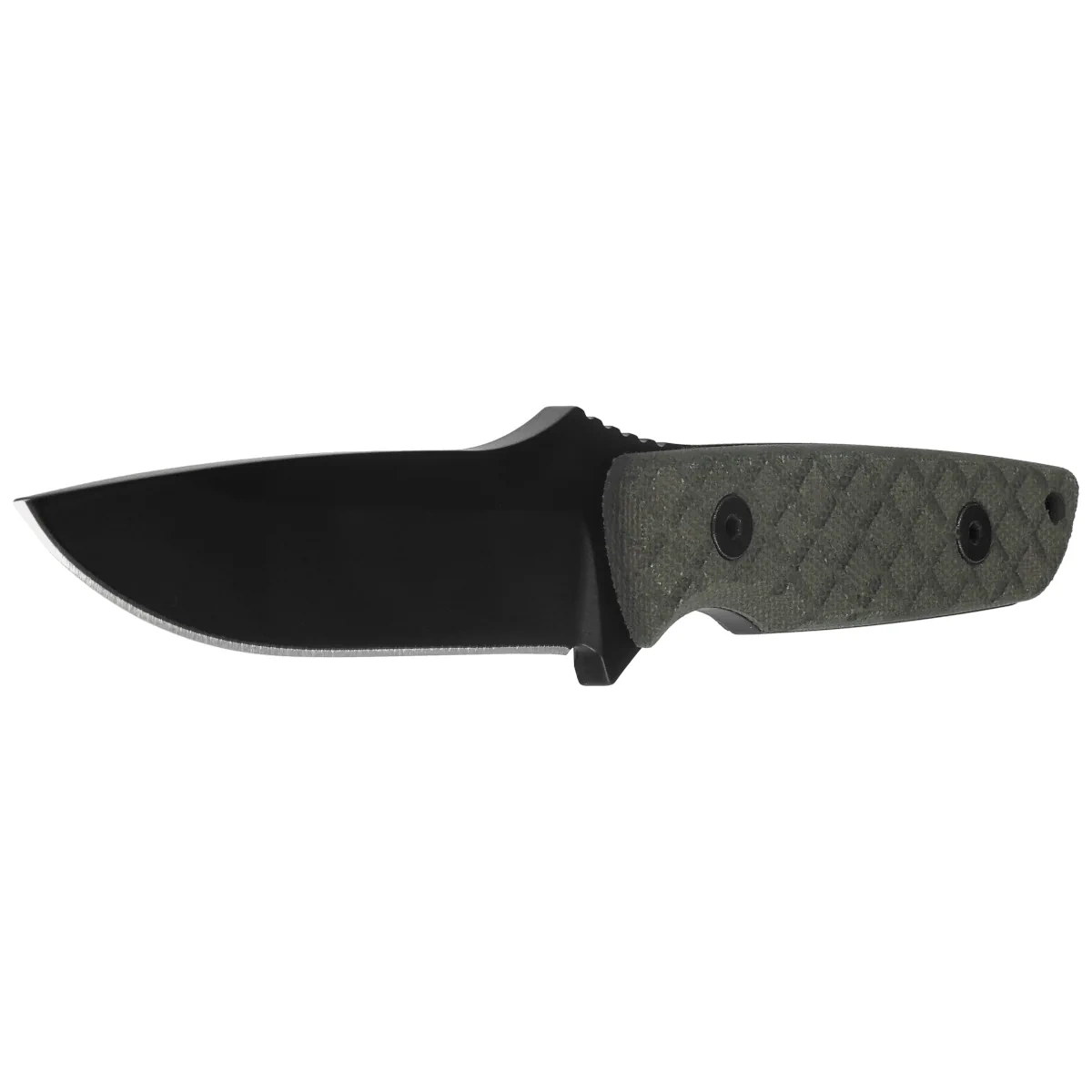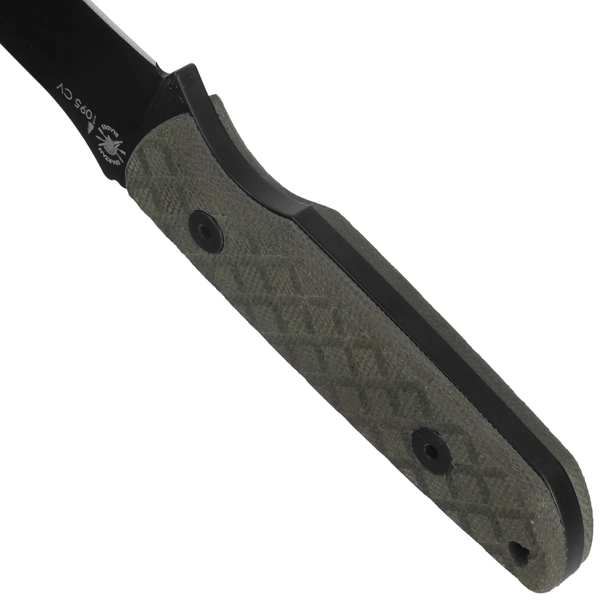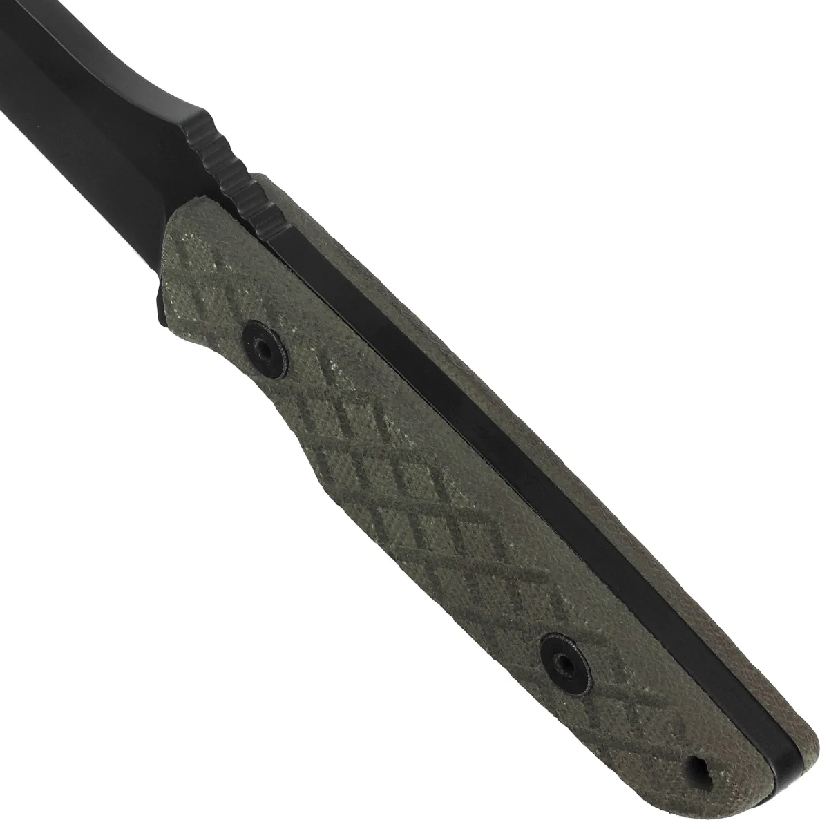 Alala Green Canvas Micarta, Black named after the ancient Greek word for “battle cry” or “war cry”, is a robust everyday knife designed for reliability and durability. Its full tang construction ensures maximum durability, making the knife resistant to damage and overload during intensive use. The 1095 Cro-Van carbon steel blade is exceptionally hard and easy to sharpen, making it the ideal choice for tasks that require both precision and effectiveness. The black, powder-coated protective layer minimizes light reflection and effectively protects the steel from corrosion. The Micarta composite handle offers a secure, stable grip, even when hands are damp or dirty. Its rough texture ensures excellent control over the tool, and the ergonomic shape is perfectly suited to the natural position of the hand. The knife comes with a durable plastic sheath for safe storage and quick access to the tool. Designed by Curtis Iovito, an experienced Special Forces veteran, this model reflects the practicality and functionality that will be appreciated by professionals and users looking for a reliable everyday tool.