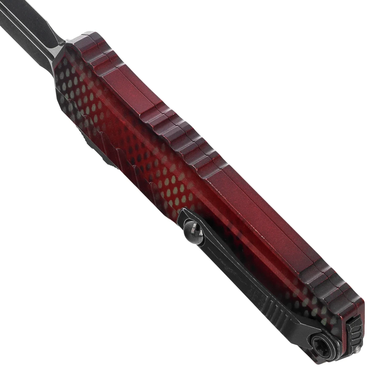 Microtech Cypher II D/E Signature OTF Knife Red X-51 Aluminum, Distressed Black M390MK by Deryk Munroe and Tony Marfione (1242-1RDX51S)