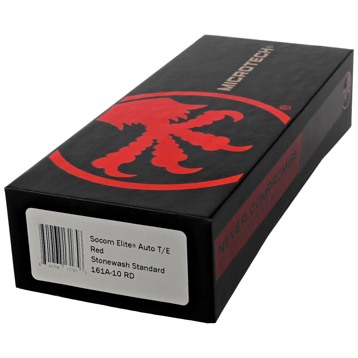 Microtech Socom Elite Auto T/E Automatic Knife Red Aluminum/3M, Stonewashed M390 by Tony Marfione (161A-10RD)