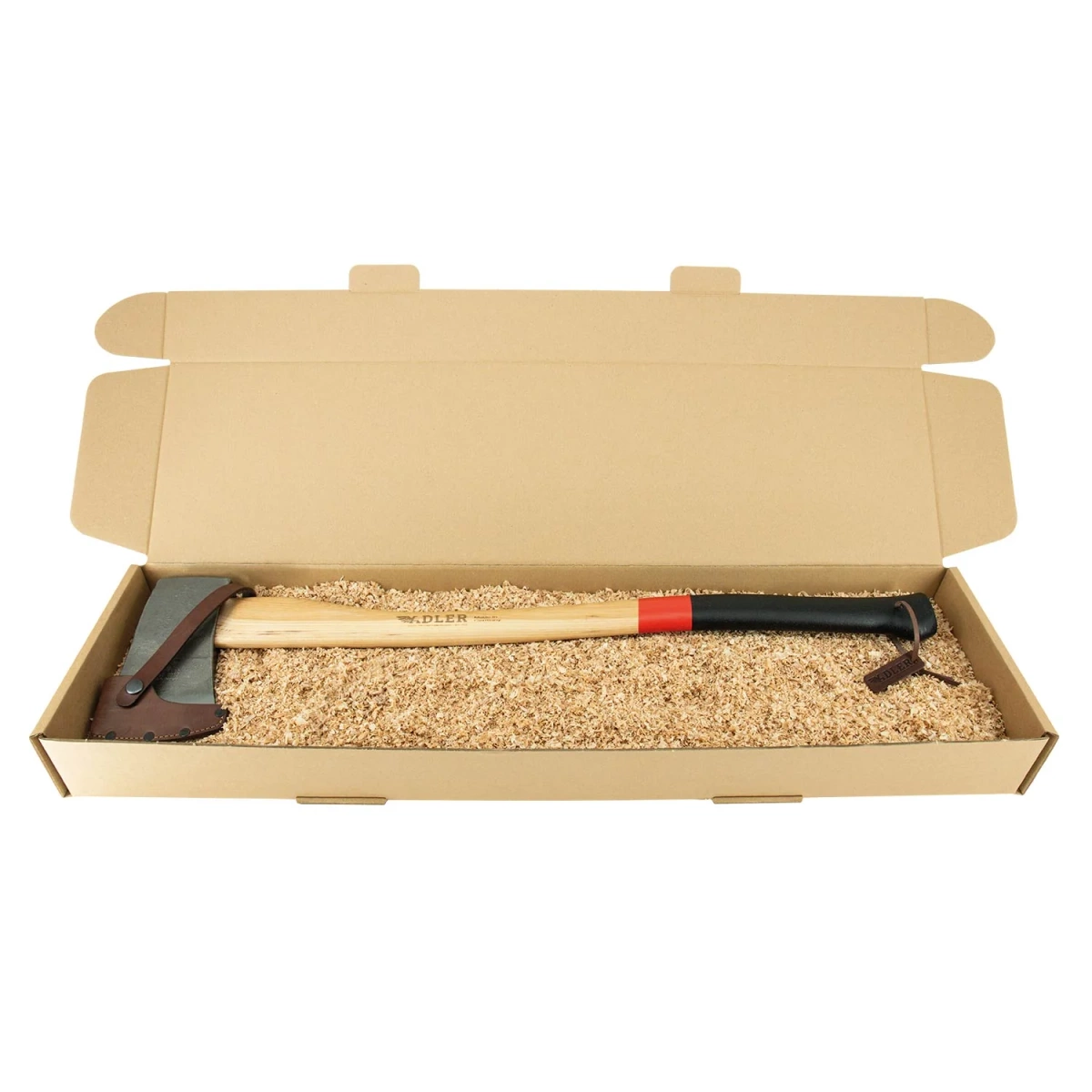 • Yankee Axe is a robust two-hand axe made of high-carbon C60 steel and mounted on a hickory handle. Ideal for forestry and gardening, it combines German precision with durability and ergonomics. Head with hand-sewn leather cover.