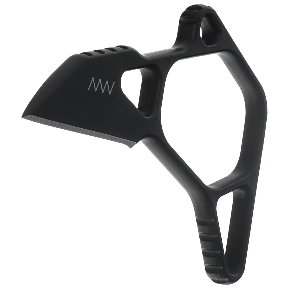 Handle - made of the same M2 steel with MIM technology , as the Blade, guaranteeing structural integrity and strength. Asymmetrical, skeletonized body with notches improves grip and minimizes weight (45 g). Finger ring allows dynamic maneuvering of the knife in an inverted position and increases control in emergency situations. Cerakote coating provides corrosion resistance and reflection masking. A cord hole provides an option for security or personalization.