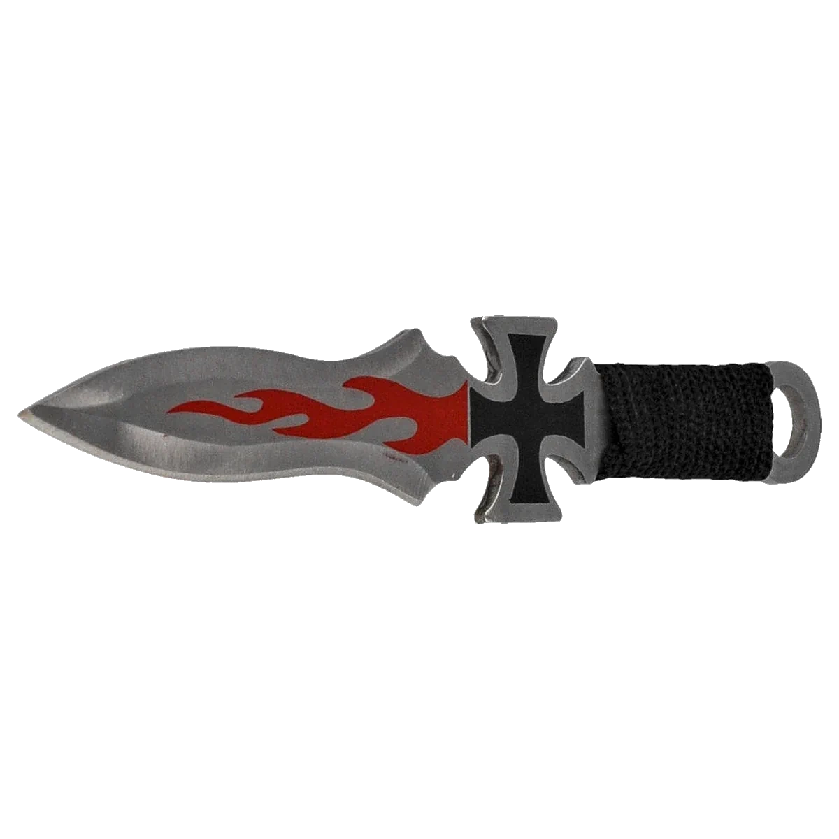 • Black Cross Set 3 pcs 3Cr13MoV - a set of dart throwing knives with full tang construction, made of stainless steel and wrapped in black paracord. Comes with a nylon carrying sheath with compartments.