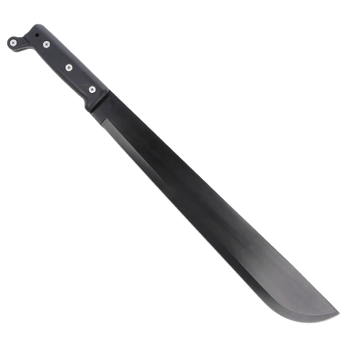 Blade - Straight Back made of 3Cr13MoV stainless steel, which provides resistance to moisture and ease of sharpening in field conditions. Black protective coating improves mechanical resistance and prevents light reflections. The straight profile and full flat grind promote dynamic cuts and increase efficiency when working with thicker vegetation. The long cutting edge allows for wide sweeps, and the robust blade geometry translates into efficiency in tasks that require a lot of force. The full tang design ensures the stability of the entire tool and eliminates the risk of breakage at the connection points.