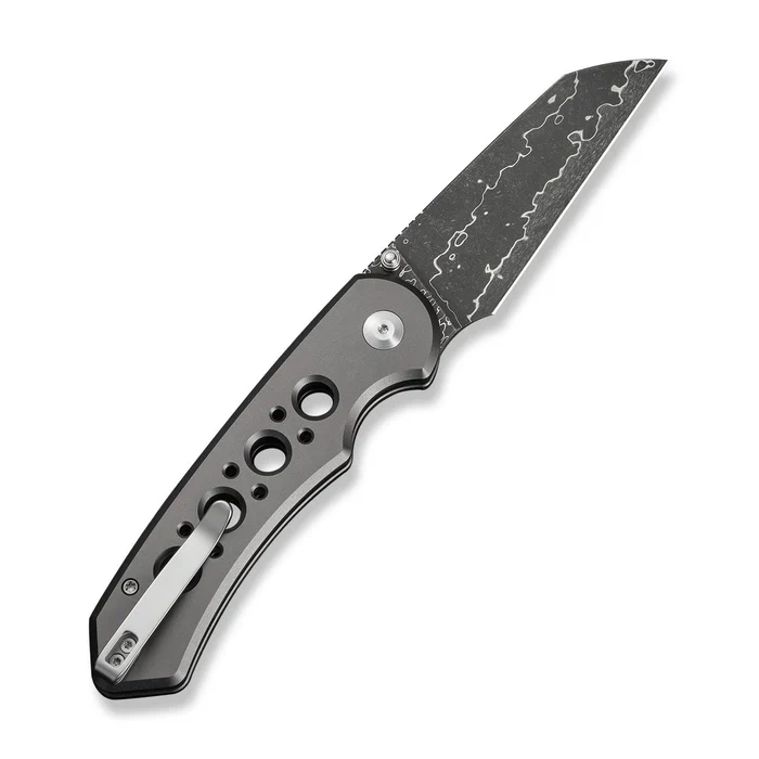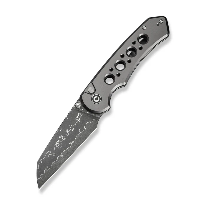 - Pragma Prime Gray Aluminum, Damascus - slim Civivi EDC folder with Wharncliffe profile Damascus steel blade, comfortable aluminum handle, intuitive button lock. Ergonomics and precision in a compact form.