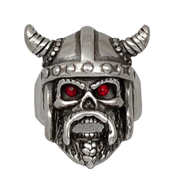 • Viking Ring Ø19 (16199-19) - a massive signet ring in the form of a skull in a Viking helmet with distinctive horns and red eyes with imitation stones. Made of durable metal in silver finish. Symbol of Nordic strength, courage and mythological aesthetics.