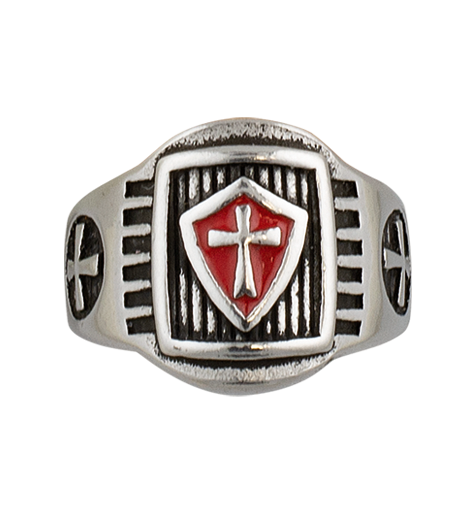- Templar Shield Ring Ø19 (09981-19) - a signet ring with an enameled Templar shield, black Maltese crosses and rhytic finish. Made of durable silver-tone metal, it makes a distinctive accent for enthusiasts of history and knightly symbolism.