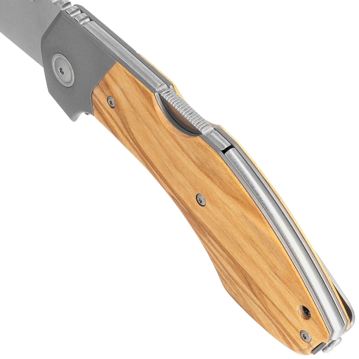 - Hero Olive Wood, Satin, design by Tommaso Rumici. Sturdy, easy to carry due to its dimensions. Made of the best materials, olive wood, titanium and M390 steel. Excellent ergonomics, ideal handheld knife. Bestseller!