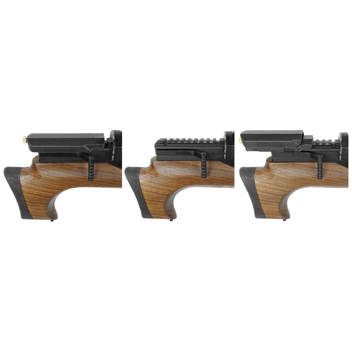 Stock – bullpup design with an ergonomic, textured pistol grip for enhanced weapon stability while shooting. Ambidextrous design suitable for both right- and left-handed shooters. Crafted from high-grade Turkish walnut. A contoured cheek rest improves aiming comfort, and a rubber recoil pad absorbs shooting energy for added control.