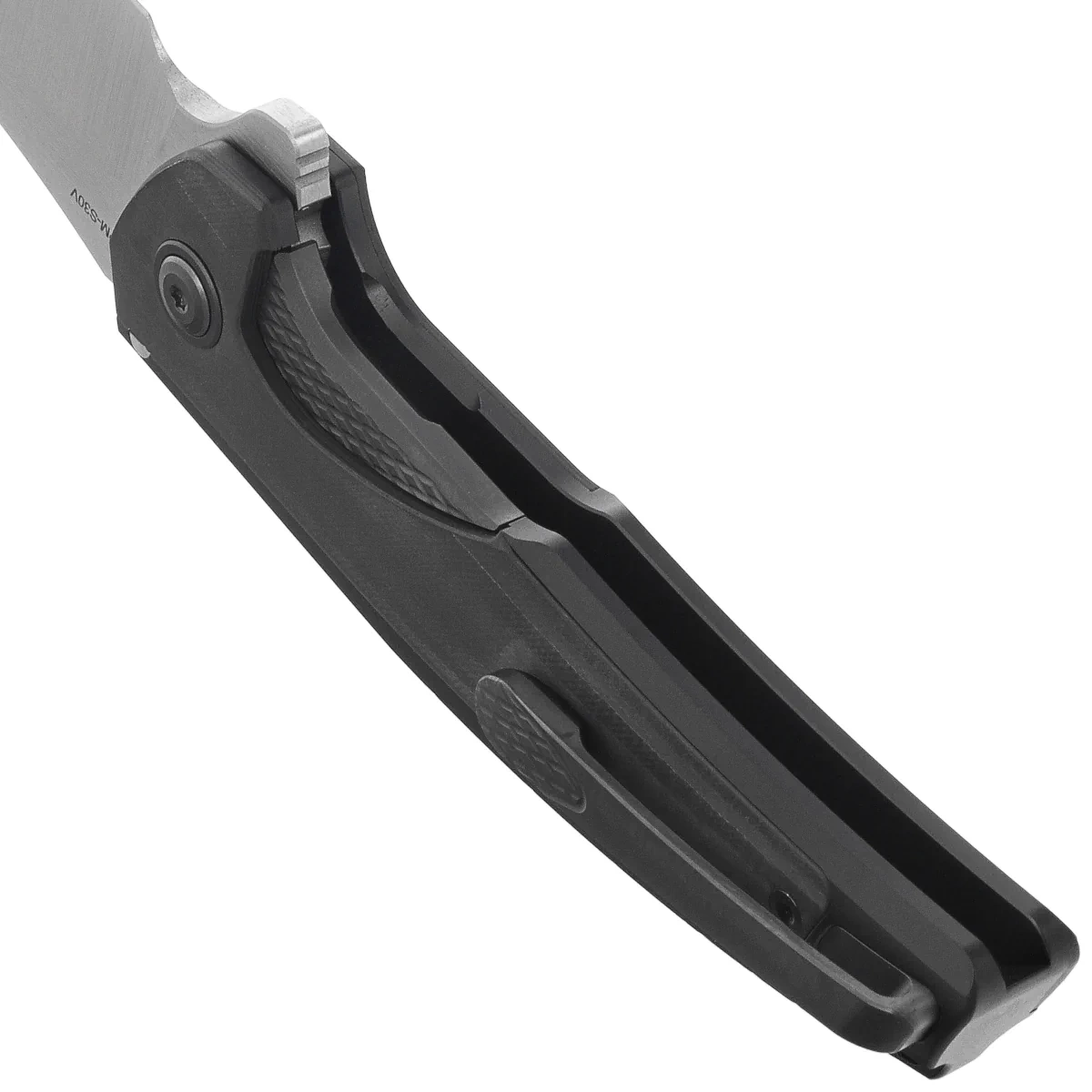 Blade - with a clip point profile allows precise maneuvering and penetration of the material, maintaining full control over the edge. The blade is made of CPM S30V steel for excellent sharpness retention and high wear resistance. The flat grind promotes the cutting properties of the blade, while the satin finish gives the overall blade a subtle sheen and minimizes the visibility of minor scratches. Ball bearing flipper mechanism allows for quick one-handed opening, and notching on the back increases grip stability.