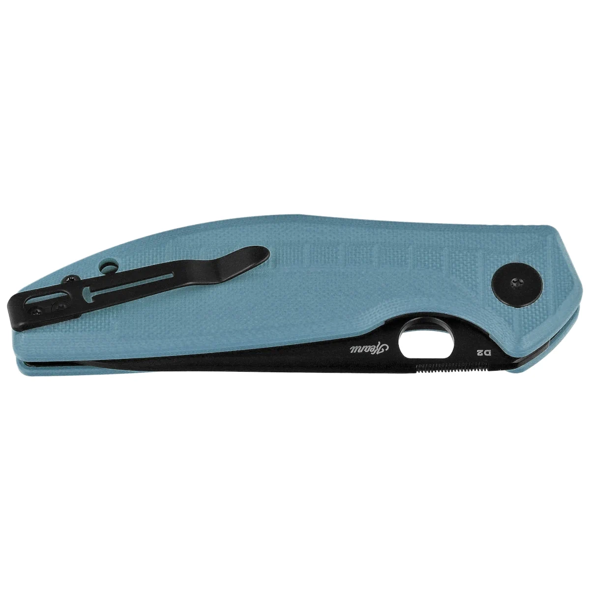 Handle - made of G10 composite guarantee lightweight, high strength and secure grip even in wet conditions. Textured surface improves grip without causing excessive wear. Button lock ensures easy locking and unlocking of the blade, while the blade opening promotes quick opening. A reversible deep carry clip allows discreet carrying, while a lanyard hole enhances attachment options. Ergonomically shaped handle provides comfort during prolonged use.
