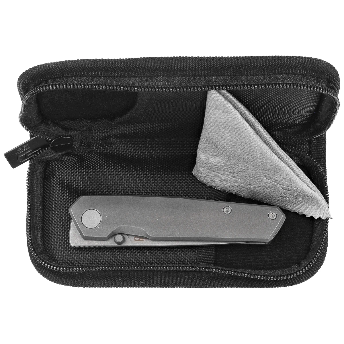 Handle - made of titanium has been sandblasted, which provides adequate grip and wear resistance of the surface. The simple, ergonomic shape fits well in the hand, and the beveled edges increase the comfort of use. The integrated deep-carry clip allows for low-profile carry, and the frame lock ensures blade stability during use. The design is rigid, durable and free of unnecessary details, making it an ideal choice for lovers of raw, technical design.