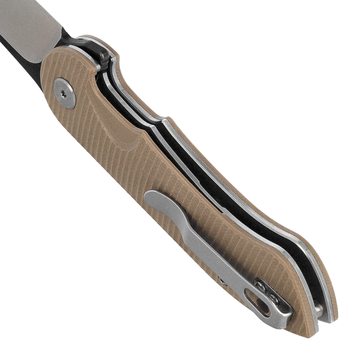 • Torpedo Beige G10, Black Stonewashed / Satin compact EDC folding knife with versatile use. Made with quality guaranteed by Bestech. Handle grips made of G10, blade made of proven D2 tool steel, excellent price!