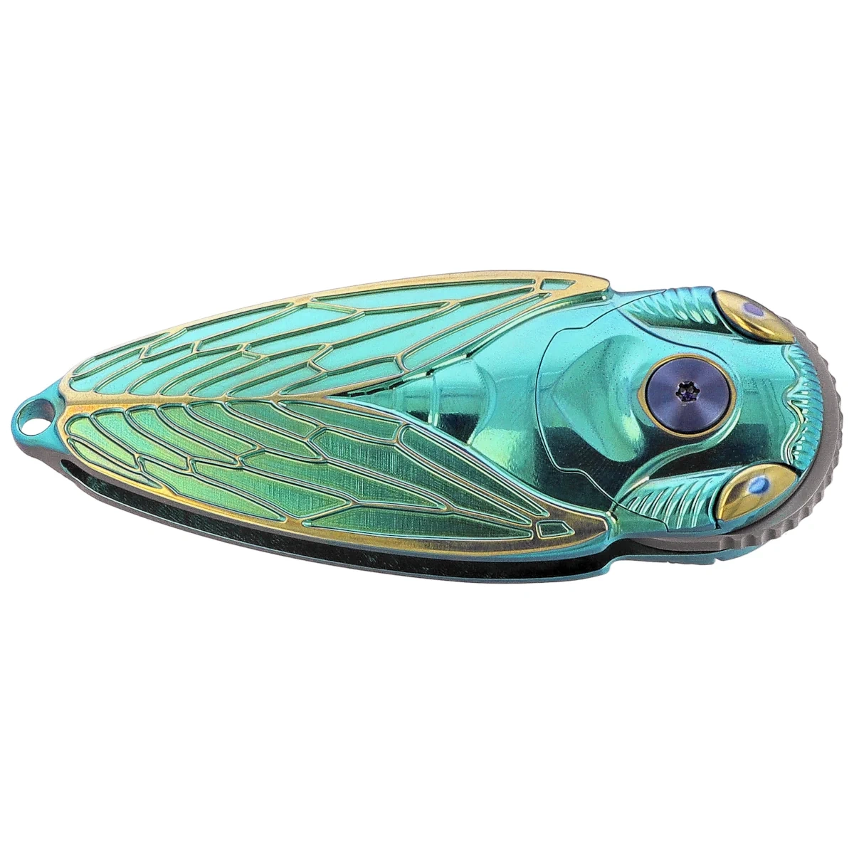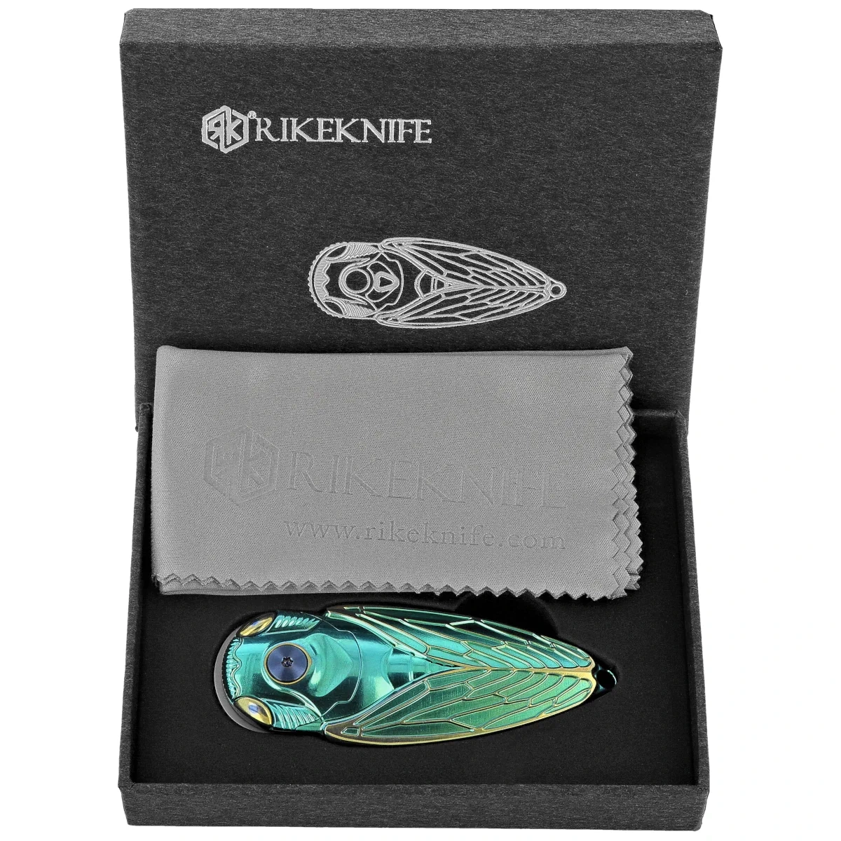 • Cicada-GG Green / Gold Titanium, Bead Blasted - a modern premium folding knife from Rike Knife, with an M390 steel blade and milled titanium handle. Biomechanical form, collectible character and technical precision in one design.