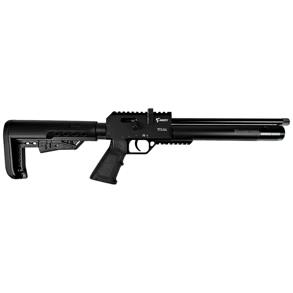 Kuzey Tulga Compact, now available in a shortened carbine version, is a powerful air rifle featuring a tactical stock with an adjustable telescopic buttstock and a reliable four-stroke bolt-action system. Despite its seemingly simple design, it meets the highest standards of shooting performance. Available in calibers 4.5 mm, 5.5 mm, and 6.35 mm.