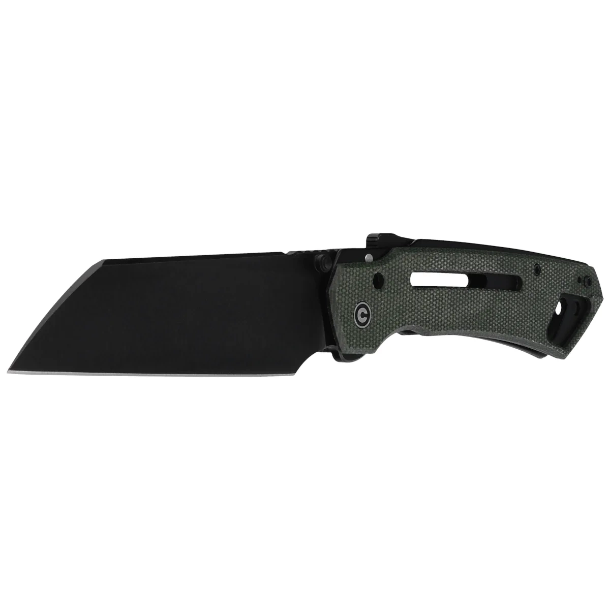 Buster FG Green Canvas Micarta, Black Stonewashed was created in collaboration with renowned designer Snecx Tan, whose approach to design is based on the principle of “form follows function.” The result is a design with a definite geometric character that stands out both visually and in terms of use. This premium folder is a tool for the discerning - designed for everyday use, but with an aesthetic that will also please collectors. Blade is made of Nitro-V steel, known for its high resistance to corrosion and maintenance of working sharpness. It uses a modified wharncliffe profile with a clearly defined cutting edge and a gently dropped tip - ideal for precision cuts and controlled movements. The finish, black stonewashed, gives the Blade a distinct, modern look. Handle is made of textured Canvas Micarta composite, which provides excellent grip even in harsh conditions. Liners and spacers add elegance, while ergonomic cutouts allow precise handling - even with gloves. The whole is complemented by a deep-carry clip, a lanyard hole and a Superlock locking mechanism for safety and wear resistance. This is a full-fledged EDC knife for users who value reliability, style and advanced engineering.