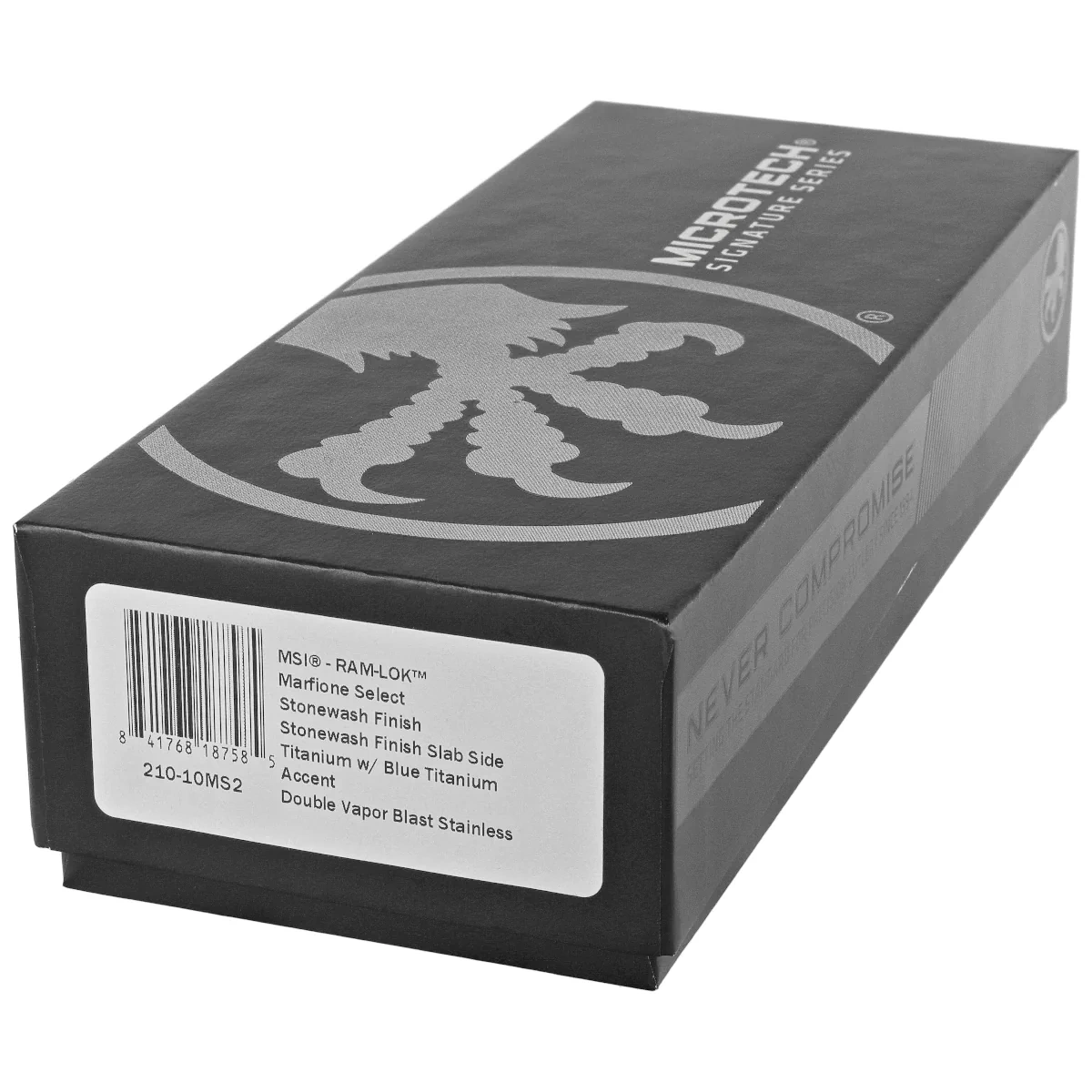 Microtech MSI S/E Ram-Lok Marfione Select Stonewashed Titanium, Blue HW, Stonewashed M390MK by Tony Marfione (210-10MS2)