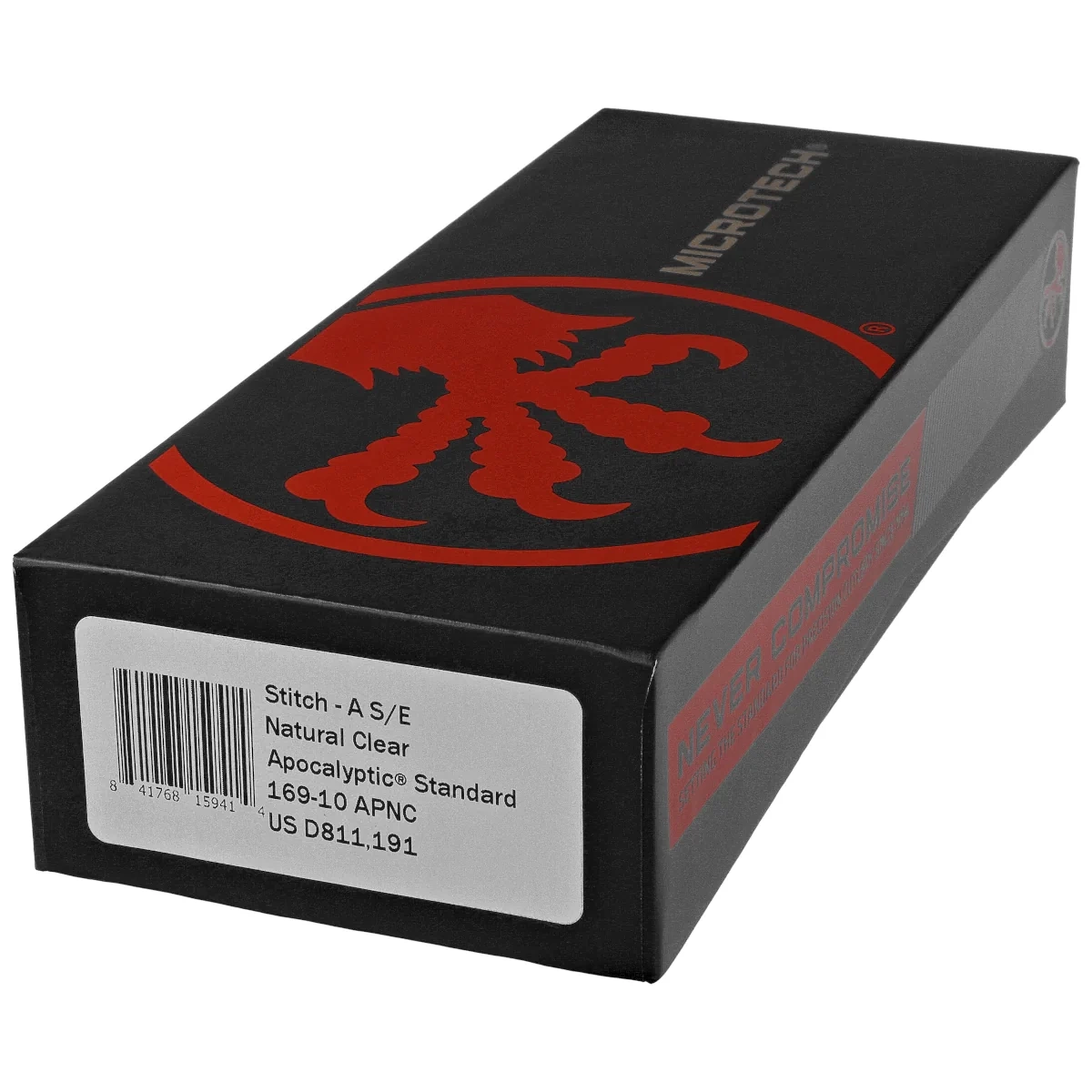 Stitch S/E-A Natural Clear Aluminum, Apocalyptic automatic version of the bold design of the versatile tactical knife, the result of a collaboration between Sebastijan Berenja and Microtech. A wide Blade and a simple handle, comfortable in every grip, give a strong tactical knife made with attention to the smallest details and the best materials. A faithful companion that will never disappoint