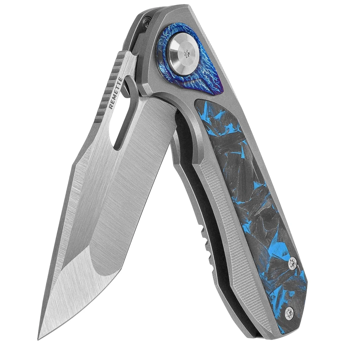 • RT-Saker Falcon Gray Titanium/Carbon Fiber, Manual Fine Grinding Satin, premium folding knife with CPM S45VN steel Blade, Titanium Handle with carbon fiber inlays and button frame lock. Durability, elegance and refined ergonomics.