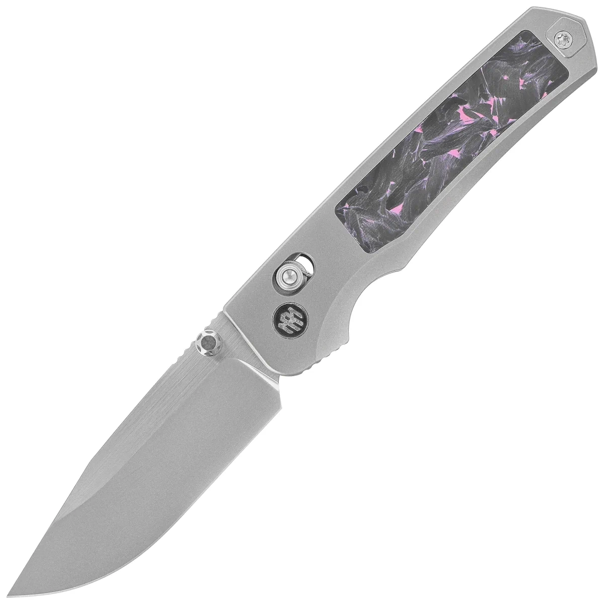Remette RT-Aurora Knife Gray Titanium/Carbon Fiber, Manual Fine Grinding Satin/Pearlescent M390 (AURA-P)
