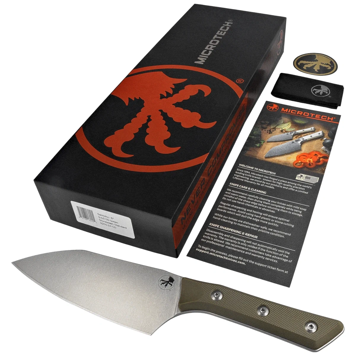 Microtech Santoku 6" Kitchen Knife OD Green G10, Stonewashed M390MK (3200-10OD)