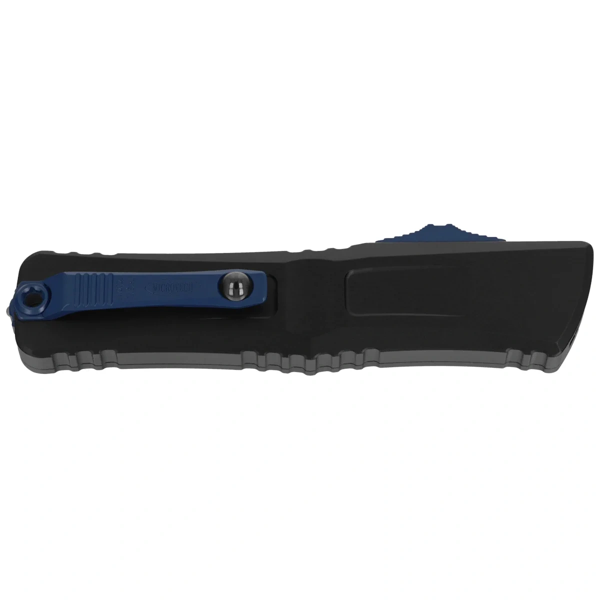 Handle - made with perfect precision in 3D technology on CNC milling machines, from Mil-Spec coated aluminum 6061-T6. Logo, screws, slide finished in Navy Blue. The surface texture of the Handle and the deep notches (jimping) on it make the knife non-slip in the hand during use. The slim profile and milled two-position (right/left) solid deep-carry clip allow the knife to be carried discreetly in the pocket, in tip-down (blade tip down) position. Equipped with a smooth rollerball, which allows the knife to slide easily into the pocket without damaging the pocket edges. The clip bears the Microtech logo and production date. The Handle is finished with glass breaker, a steel triangle, into which a tungsten carbide ball has been pressed.