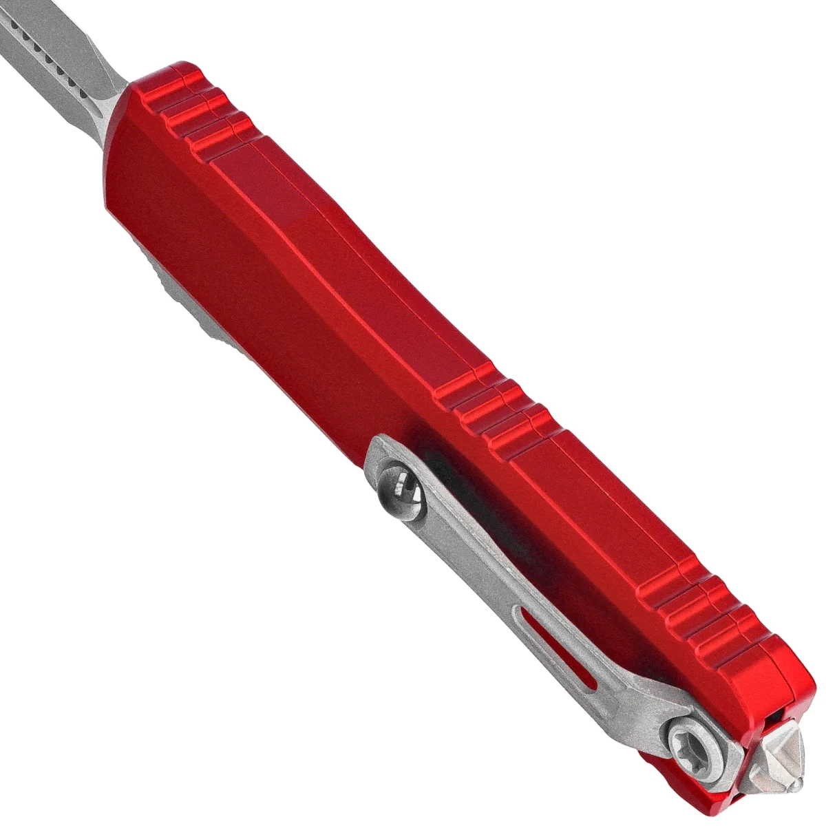 Ultratech Gen IV D/E Merlot Aluminum, Apocalyptic is a full-size OTF (Out The Front) automatic knife from Ultratech. The fourth generation is distinguished by a number of improvements such as; Crud Kutter™, Dual-Fuel Drive Train™. The Handle was also redesigned, equipping it with solutions known from other models. Working in D/A (Double Action) mode, it allows the blade to be instantly extended and retracted with a single thumb movement. The design by Tony Marfione, owner of Microtech Knives, combines modern design with the highest quality workmanship.