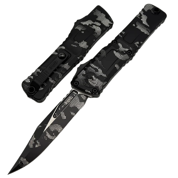 Combat Troodon Gen III Bowie Signature Pixel Camo Aluminum, Pixel Camo this largest of the automatic knives is the pinnacle of precision engineering and tactical prowess in the field of OTF (Out The Front) knives. Built for a wide range of utility applications, it boasts a 25% larger size compared to the flagship Troodon. Precisely crafted, it features a sophisticated and hellishly fast mechanism that extends the razor-sharp blade. 100% made and assembled in the USA. Designed by Anthony Marfione, knifemaker and owner of Microtech Knives.