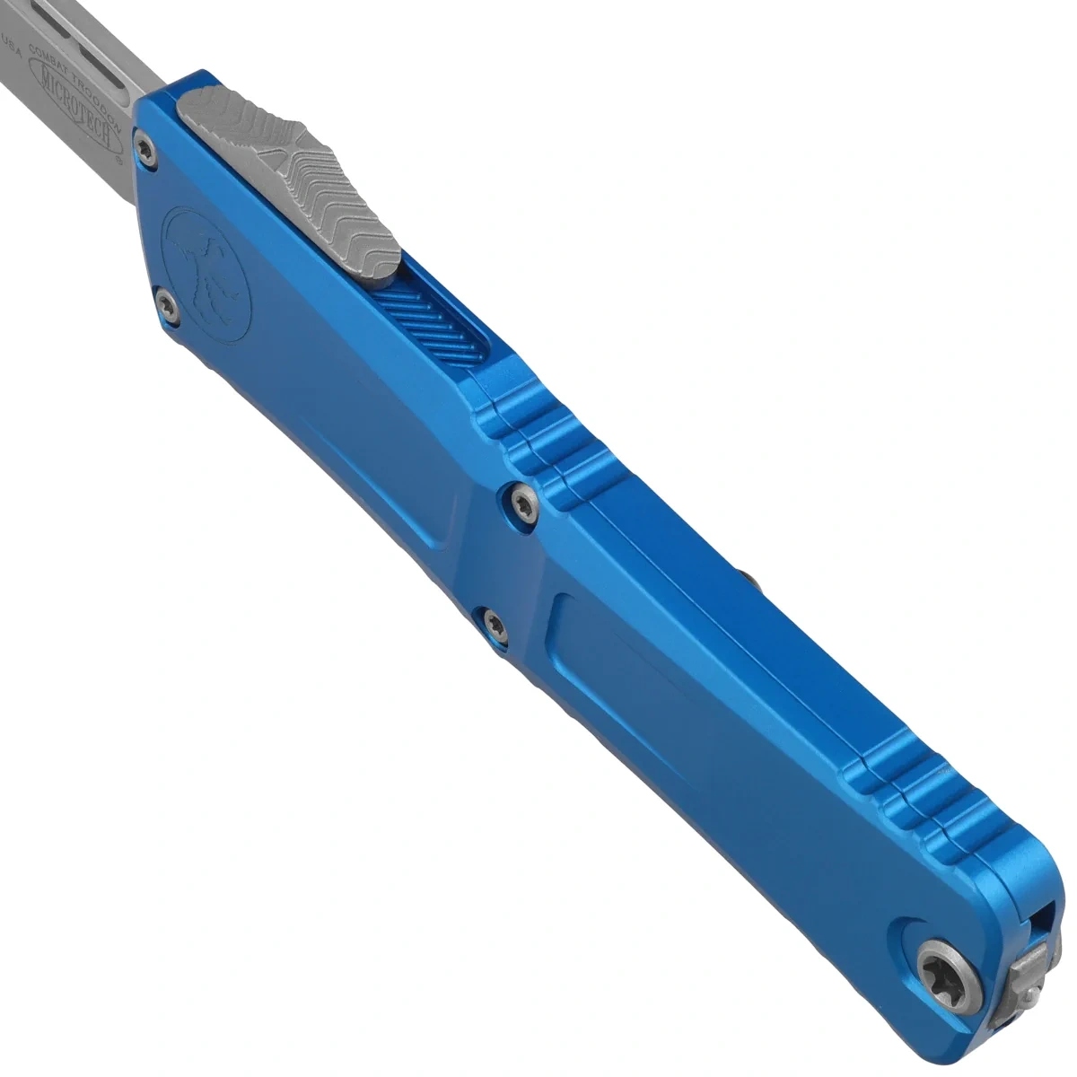 Microtech Combat Troodon Gen III S/E OTF Knife Blue Aluminum, Apocalyptic M390MK by Tony Marfione (1143-10APBL)