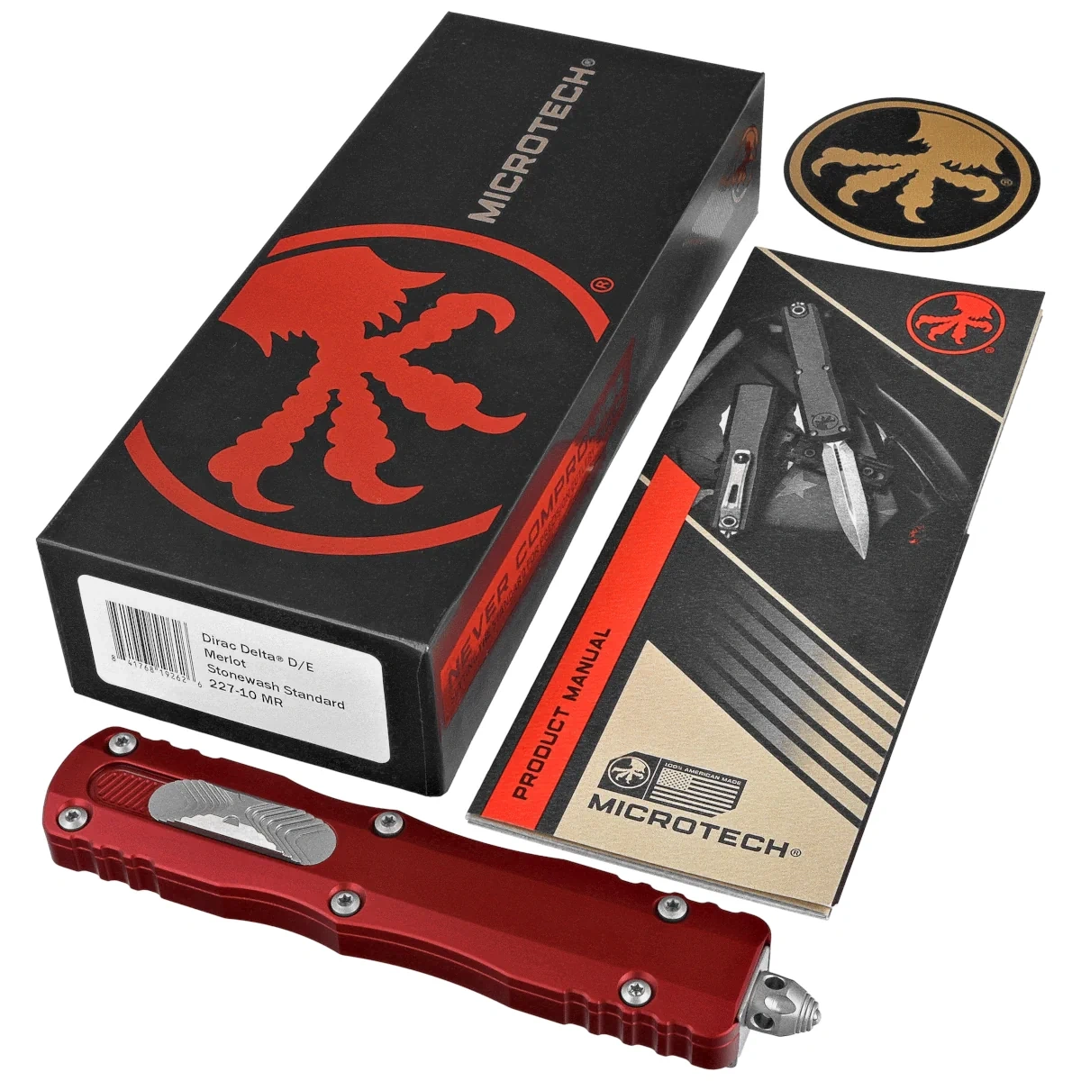 - Dirac Delta D/E Merlot Aluminum, Stonewashed Larger version of the OTF automatic knife from the Dirac series. D/A mode, equipped with a fast blade ejection mechanism. Slider button on the side of the handle. Designed by Tony Marfione.