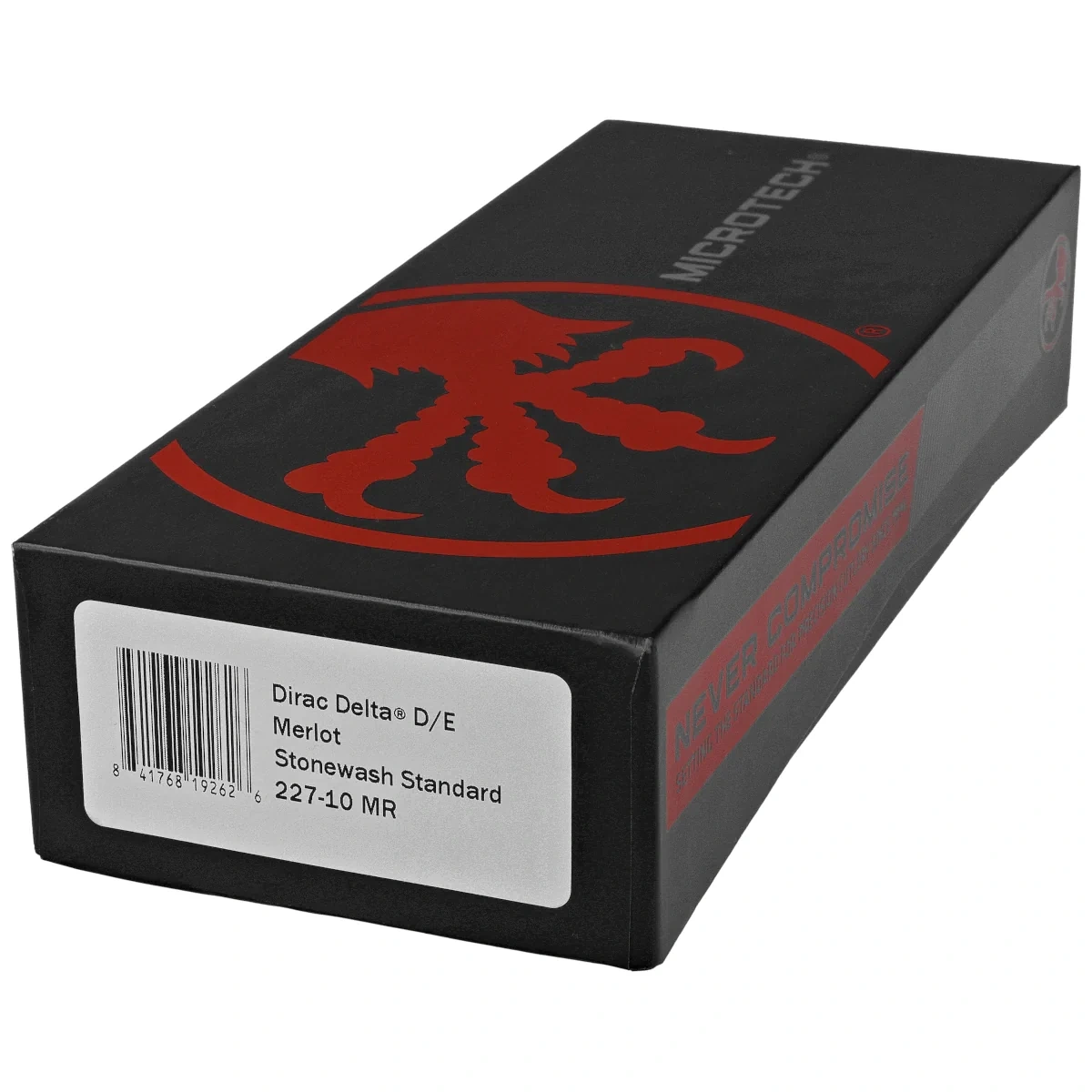 Dirac Delta D/E Merlot Aluminum, Stonewashed is an enlarged OTF automatic knife from the Dirac series. Operating in D/A mode , it features a hellishly fast blade extension mechanism. Slider button on the side of the handle. 100% made and assembled in the USA. Designed by Anthony Marfione, knifemaker and owner of Microtech Knives.
